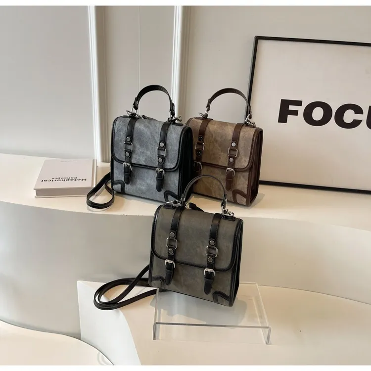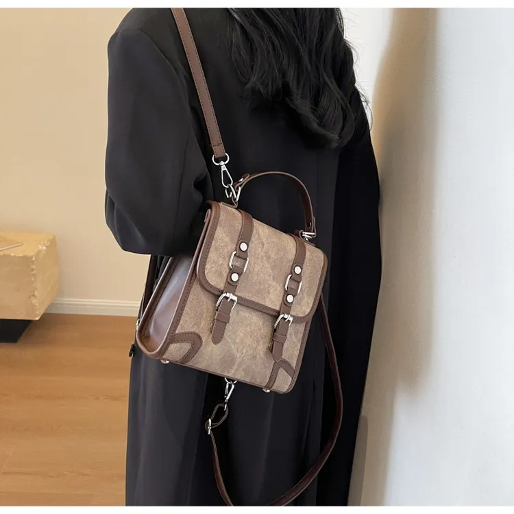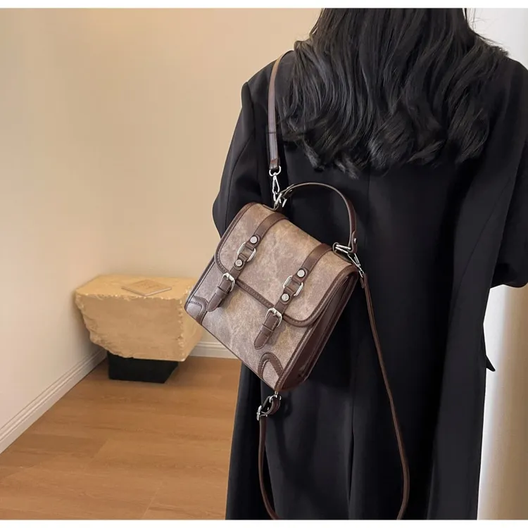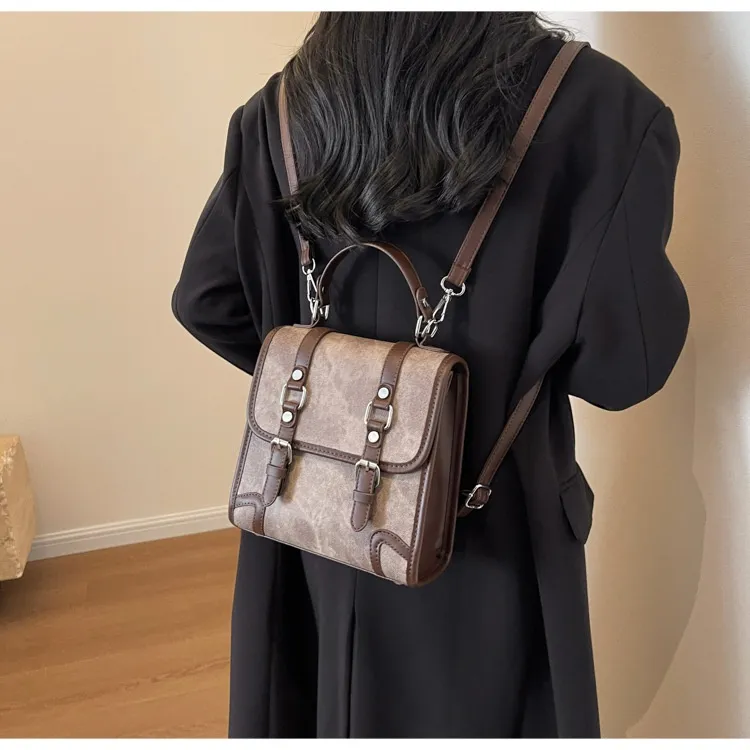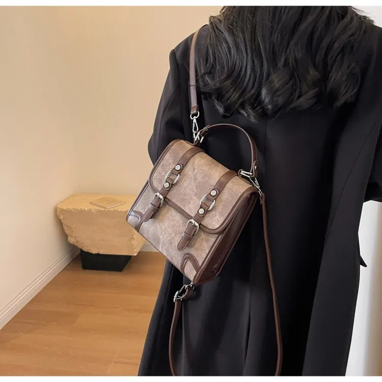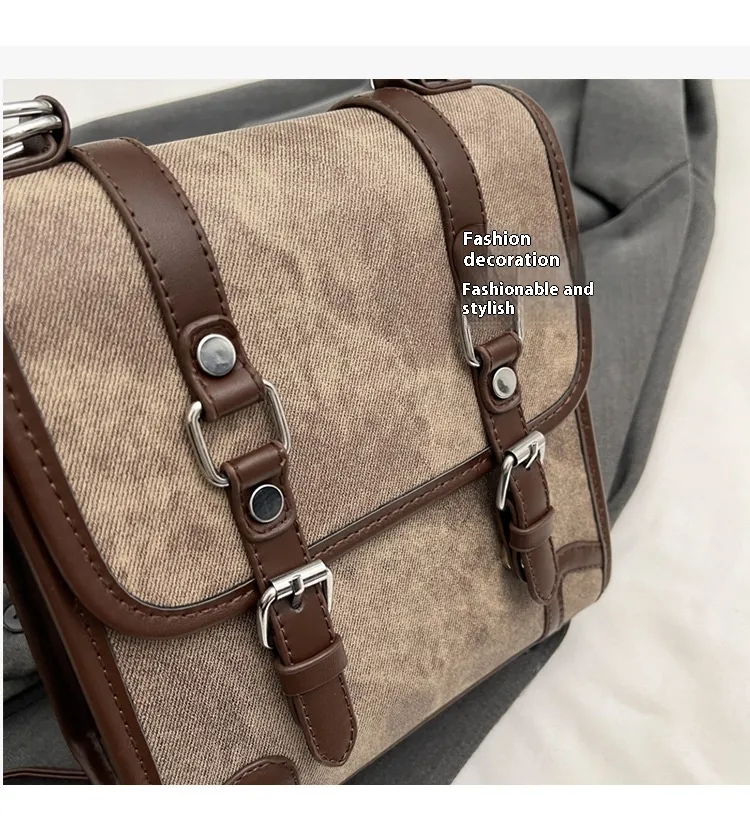 - Diseño retro: Aspecto de inspiración vintage con detalles de cuero y acentos de hebilla.