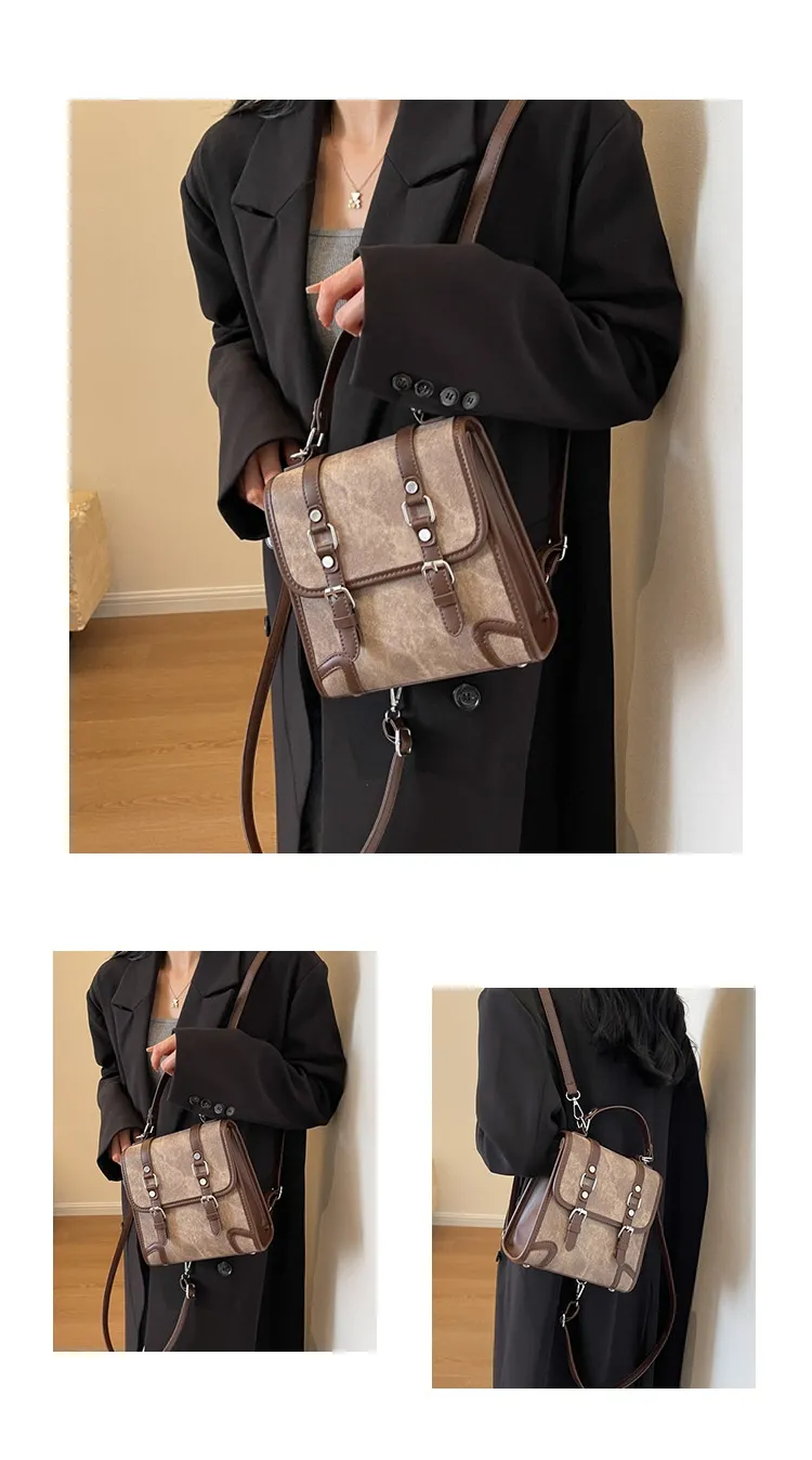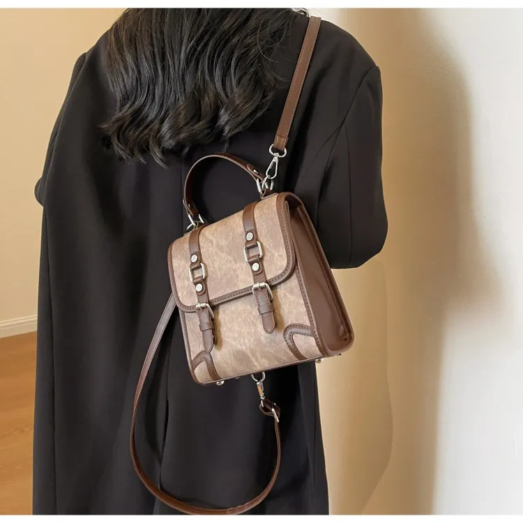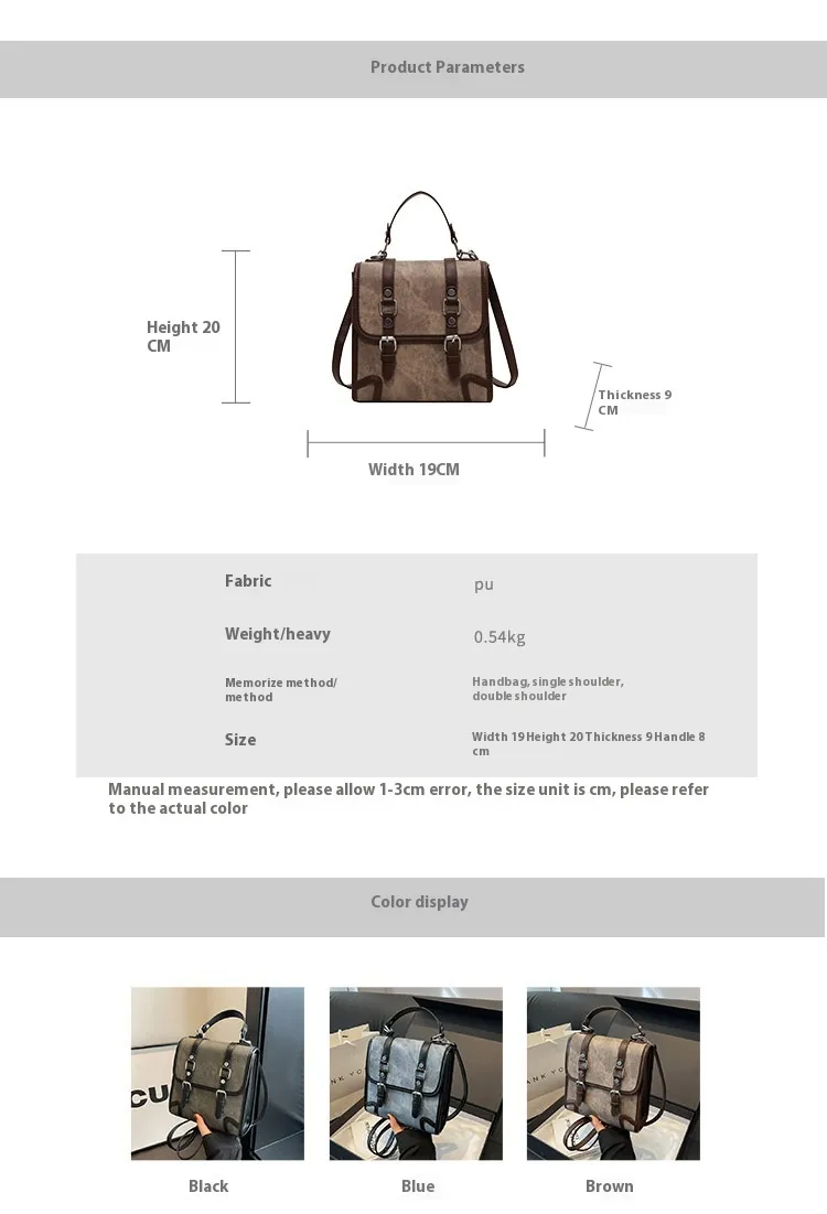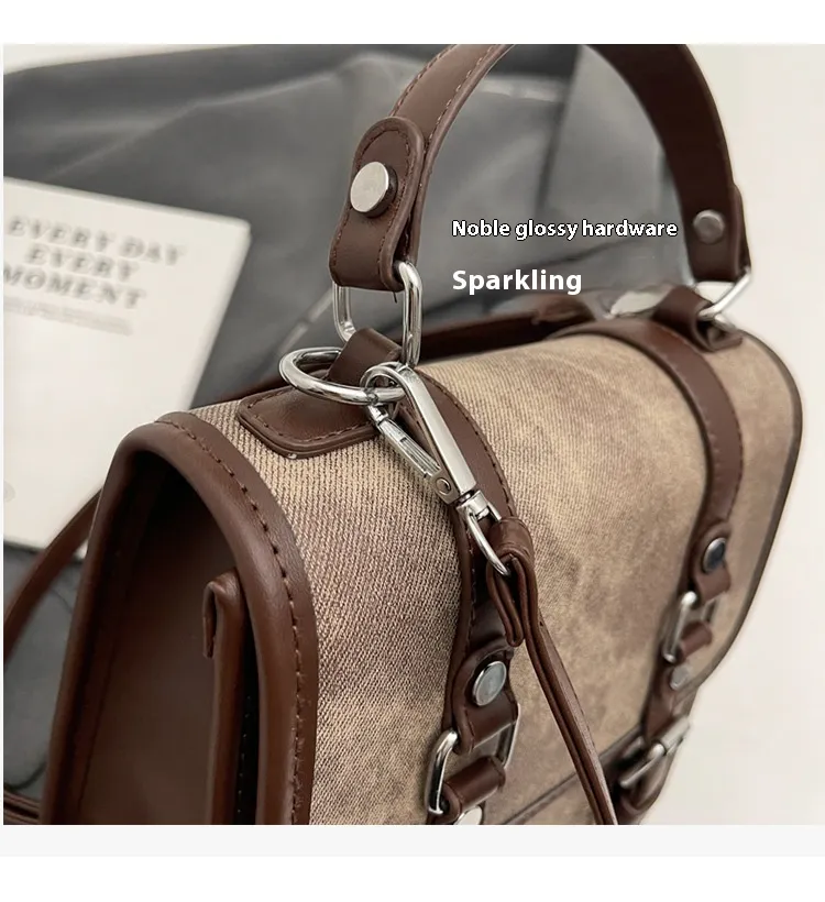 - Diseño retro: Aspecto de inspiración vintage con detalles de cuero y acentos de hebilla.