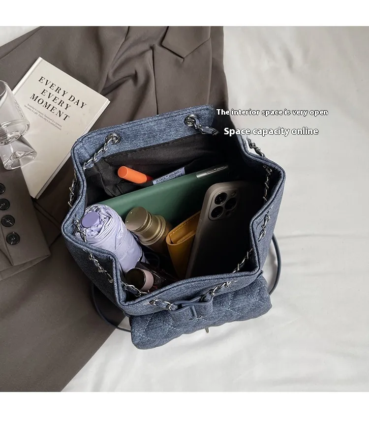 ¿Por qué elegir la mochila pequeña con cadena Denim Rhombus?