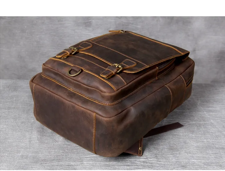 Mochila retro de cuero de primera capa con capacidad para caballos locos