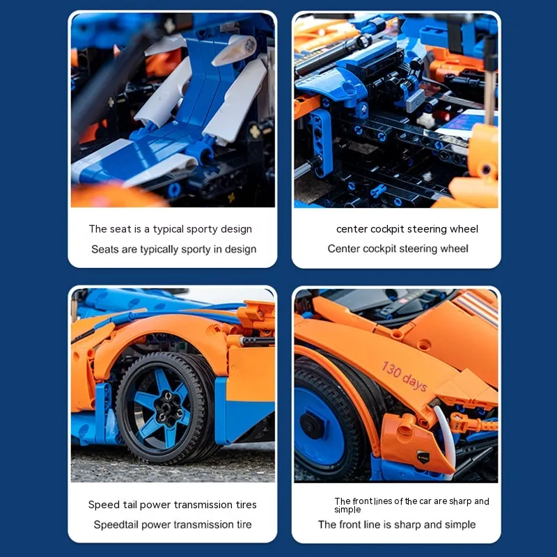 Este modelo reproduce la apariencia elegante y aerodinámica de un auto deportivo real. Desde sus suaves curvas hasta los detalles interiores y exteriores, el diseño del auto impresionará tanto a niños como a adultos. Una vez ensamblado, se convierte no solo en un juguete, sino en una llamativa pieza de exhibición para los entusiastas de los autos.