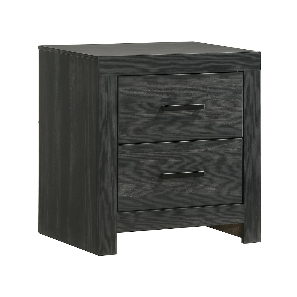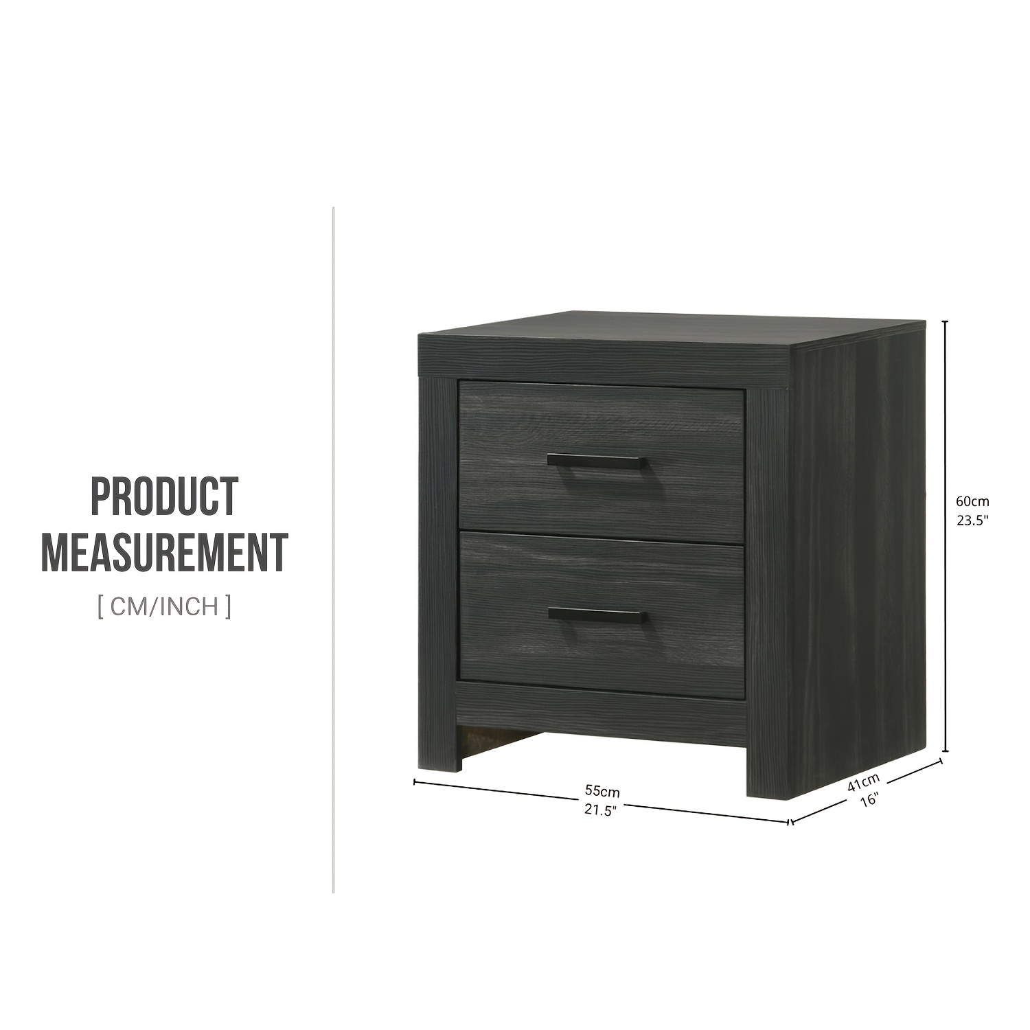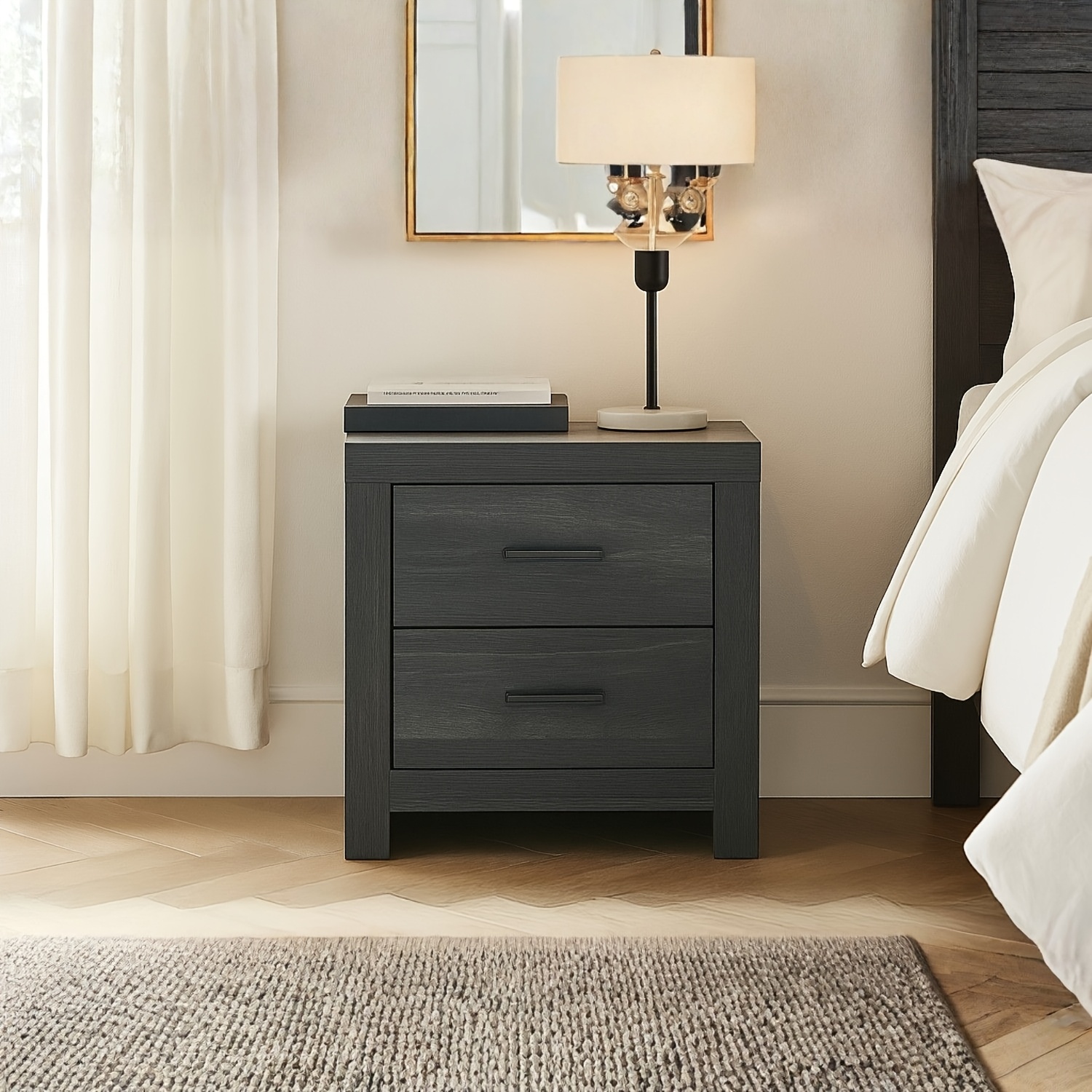 Description – Modern 2-Drawer Bedside Table with Charcoal Wood Grain Finish