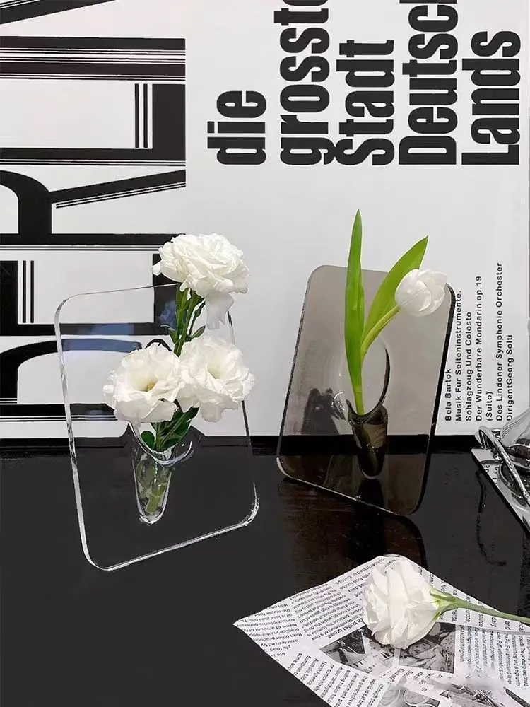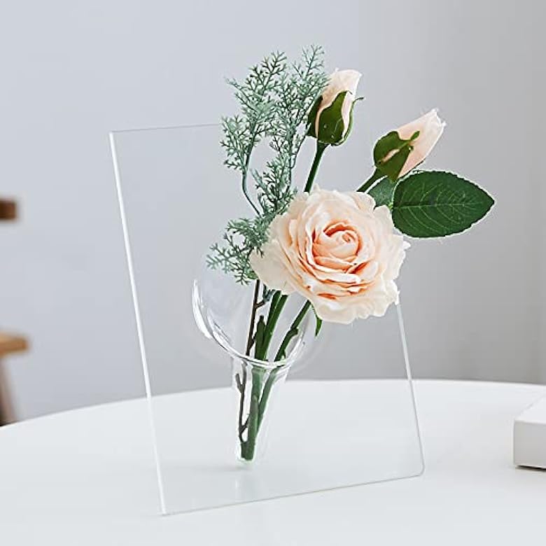 WIDE APPLICATION -- The perfect decoration - Acrylic photo frame vase can be placed on any table, just with flowers it will be very beautiful, suitable for table, desk, end table, living room, room, any decoration