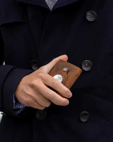 Etiquétala y rastrea tu billetera en cualquier parte del mundo. Nuestra billetera AirTag de cuero premium se integra a la perfección con el AirTag de Apple (no incluido)