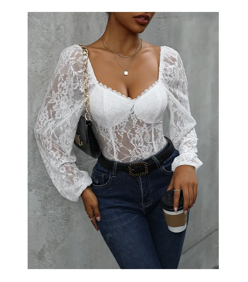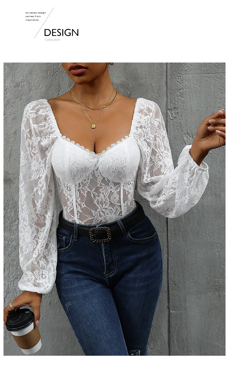 Mono ajustado con cuello de corazón y costuras de encaje integradas para mujer