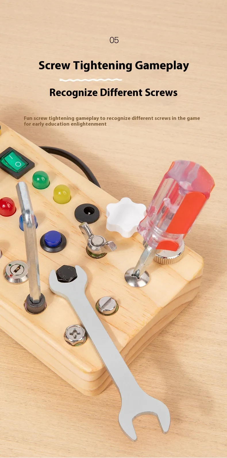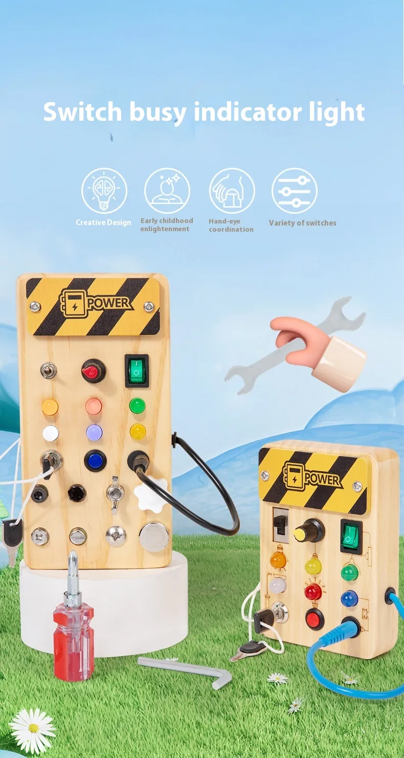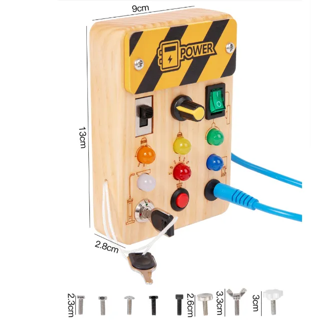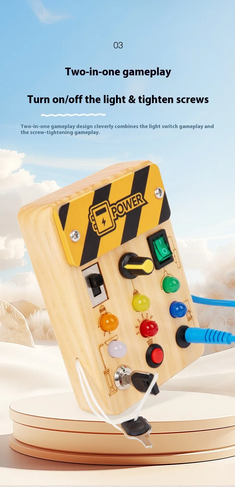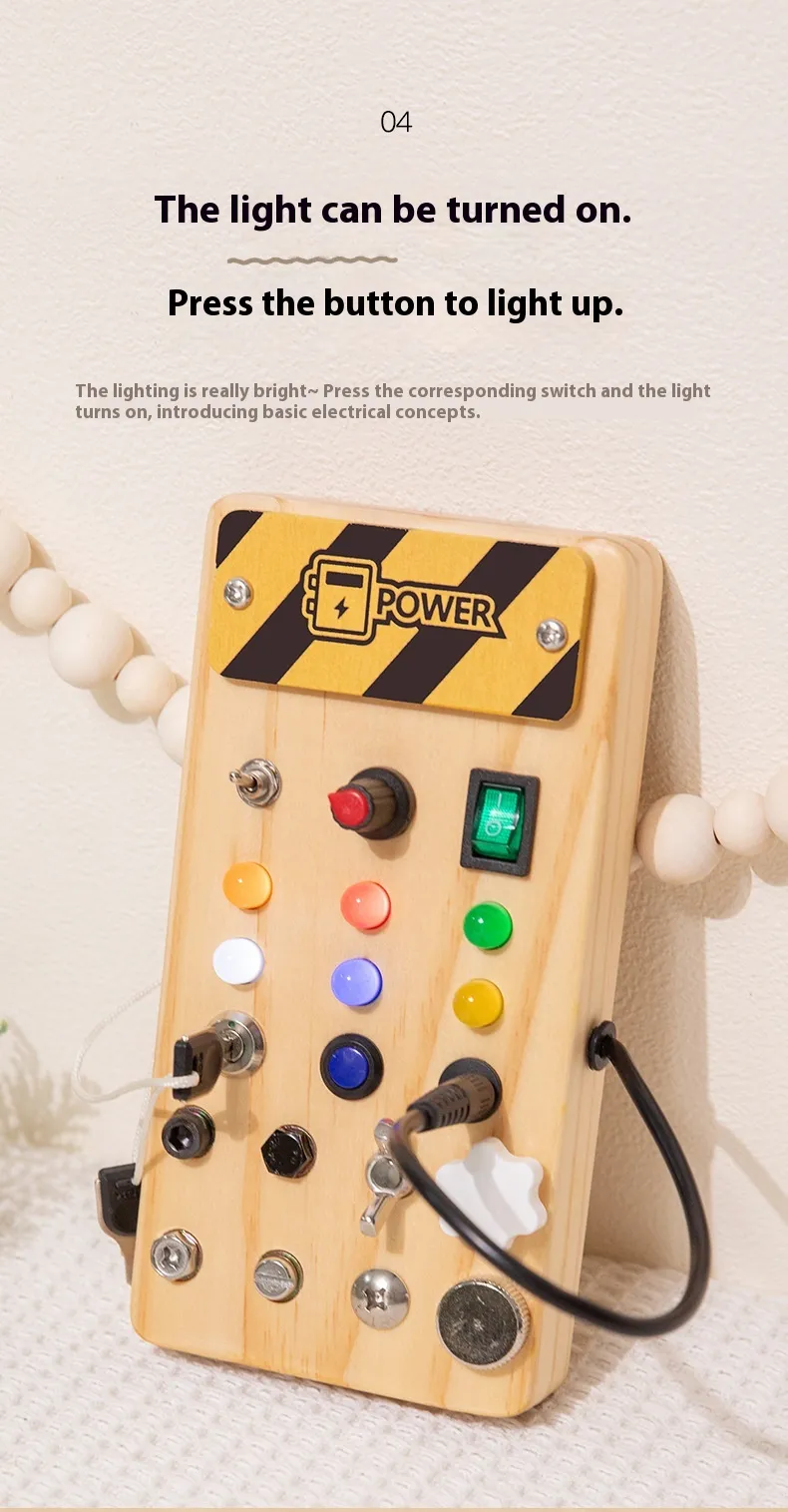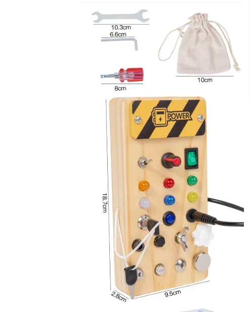 The Montessori Wooden Switch Board is an ideal educational tool for toddlers and young children. Perfect for parents and educators who want to promote hands-on learning, this interactive toy helps children develop fine motor skills, hand-eye coordination, and an understanding of cause and effect. Based on the Montessori educational philosophy, this switchboard encourages independent exploration and enhances problem-solving abilities in a fun, engaging way.