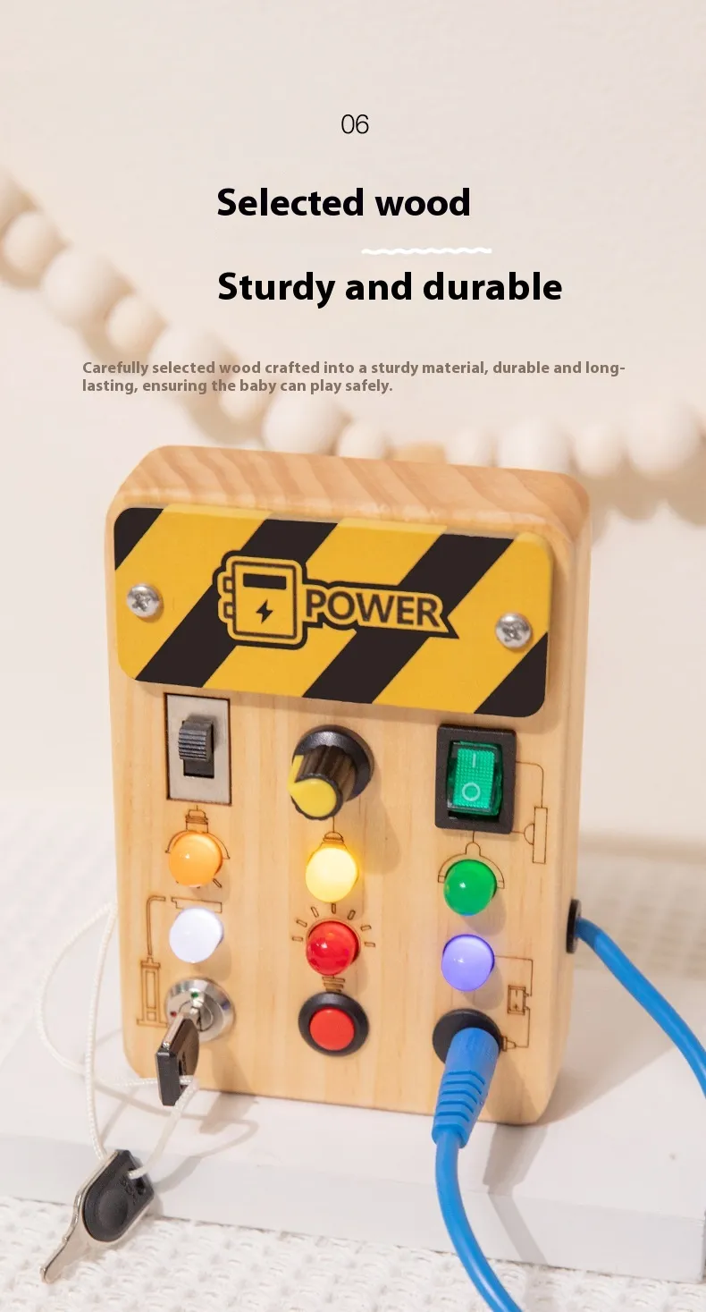 Safe and Durable: Made from high-quality, non-toxic wood, this switchboard is safe for children and built to last, ensuring