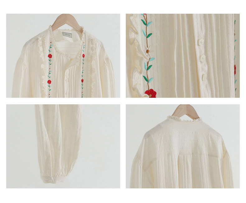 Mori Age-reducing Temperament Embroidered Cotton Shirt Women