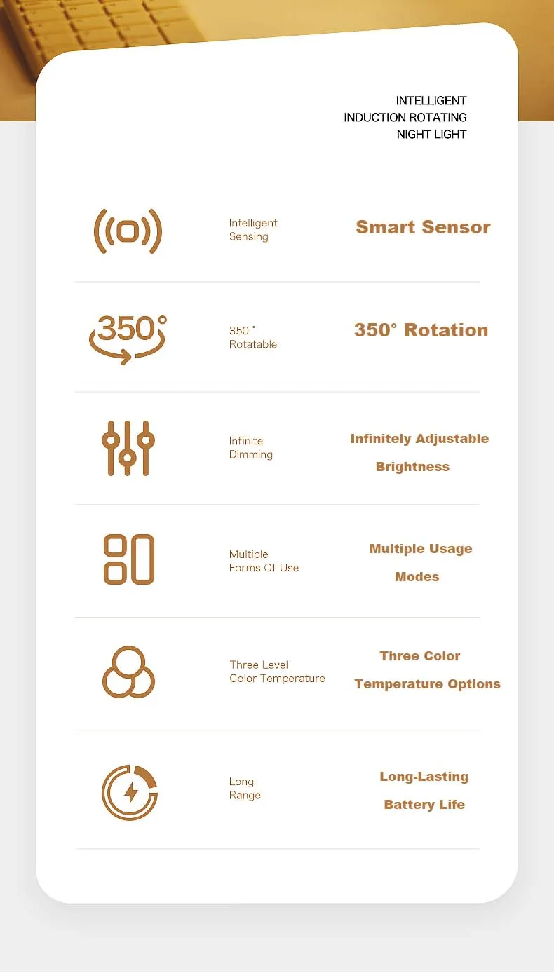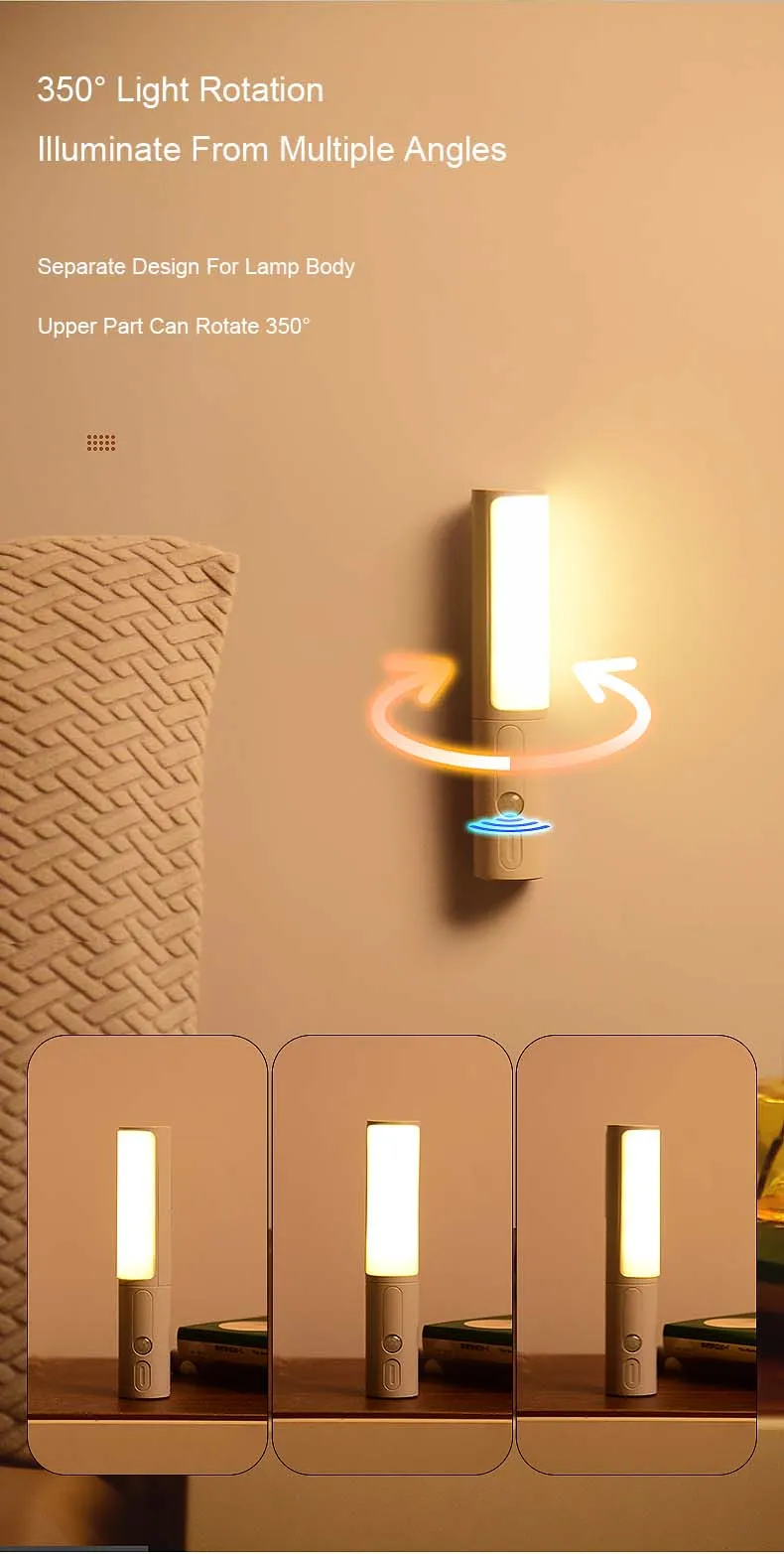 Rechargeable Multifunctional Sensor Night Light Our motion sensor night light's 350 rotatable light body protects your eyes from glare while