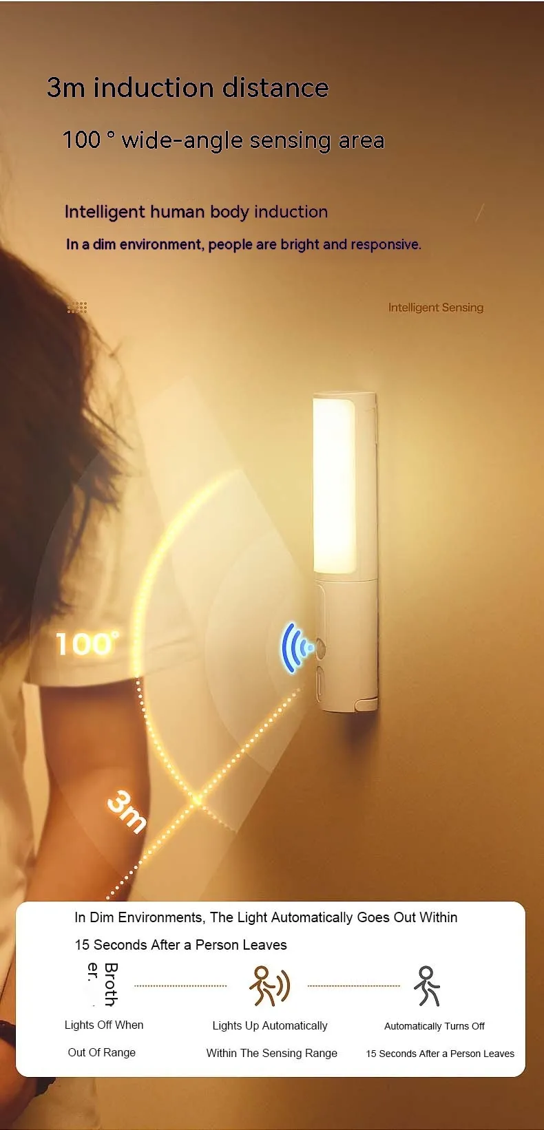 Activates lighting instantly when movement is detected in dark environments.