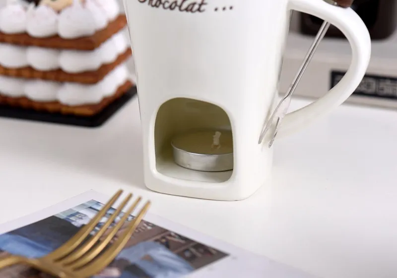 Unlike traditional fondue setups, this mug uses a simple tealight candle for heating, allowing you to create your own candles and add a