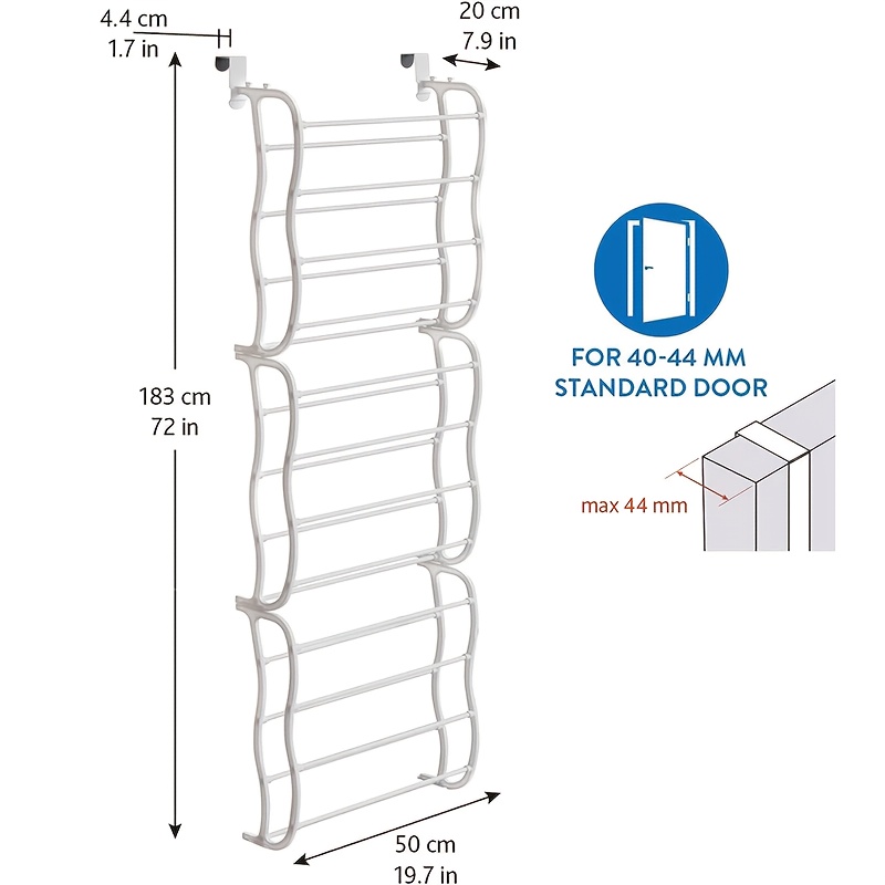 - Space-Saving Design: Designed to hang behind any door, this rack helps you make the most of unused vertical space, offering a convenient solution for small spaces.