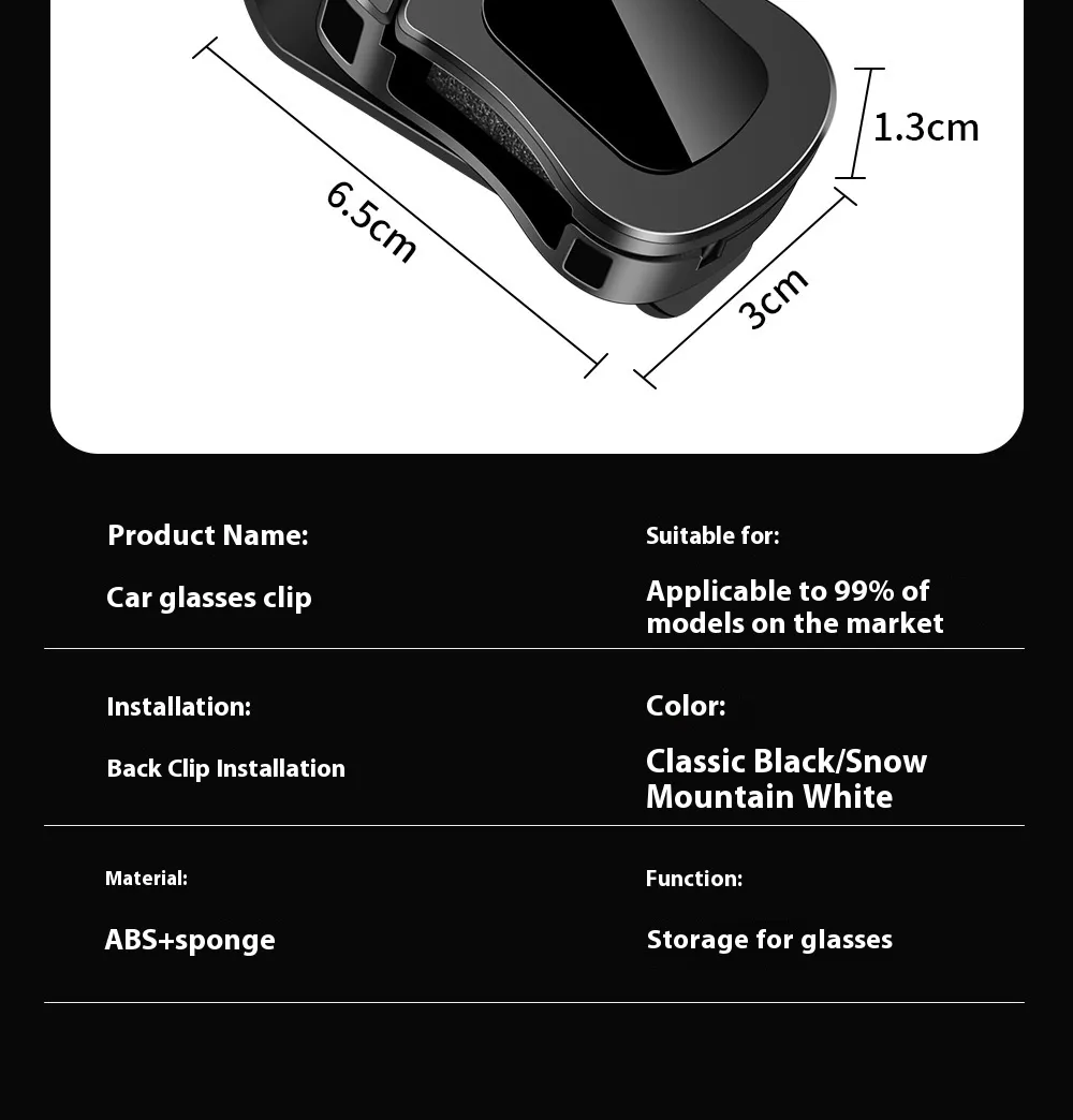 The high‑quality materials and universal fit make this clip a reliable addition to any vehicle. Easy installation and maintenance mean there are no modifications or tools required—simply clip it in place and start using it. The attached soft interior protects delicate lenses, while the strong grip keeps everything secure even on bumpy roads.