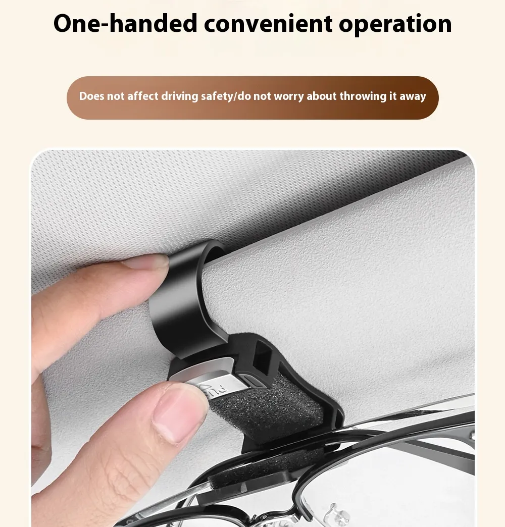 Engineered for convenience, the clip’s ergonomic design allows easy insertion and removal of items with one hand, ensuring that you never have to fumble or take your eyes off the road. Its low‑profile build prevents obstruction of vision while driving, yet it is highly accessible for when you need to quickly reach your glasses or essentials. Whether you have thick sunglasses, oversized frames, or compact reading glasses, the clip’s flexible tension accommodates different shapes and sizes without scratching delicate lenses.