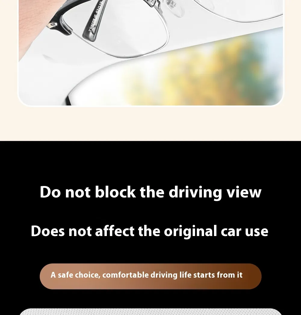 Perfect for commuters, road trippers, rideshare drivers, and families, the Multifunctional Car Glasses Clip reduces distractions by eliminating the need to search for eyewear while driving. It provides a simple, effective way to store glasses securely without obstructing vision or damaging lenses.