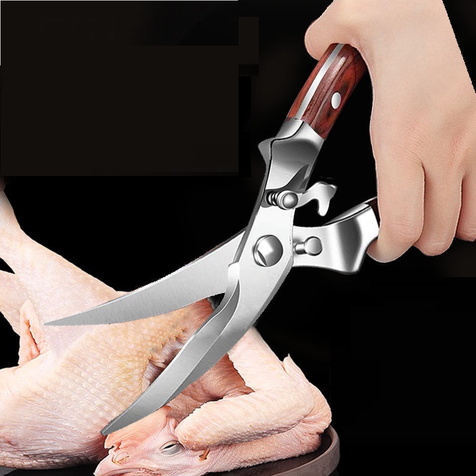 Not only are these scissors perfect for cutting chicken and meat, but they also serve multiple functions in the kitchen. Use them for trimming vegetables, snipping herbs, and even opening packages, thanks to the sturdy construction and razor-sharp edges. The built-in bottle opener and nutcracker add extra convenience, making these multifunctional kitchen scissors an all-in-one solution for your culinary needs. Their compact size allows for easy storage, and they are dishwasher-safe, ensuring easy cleanup after heavy use.