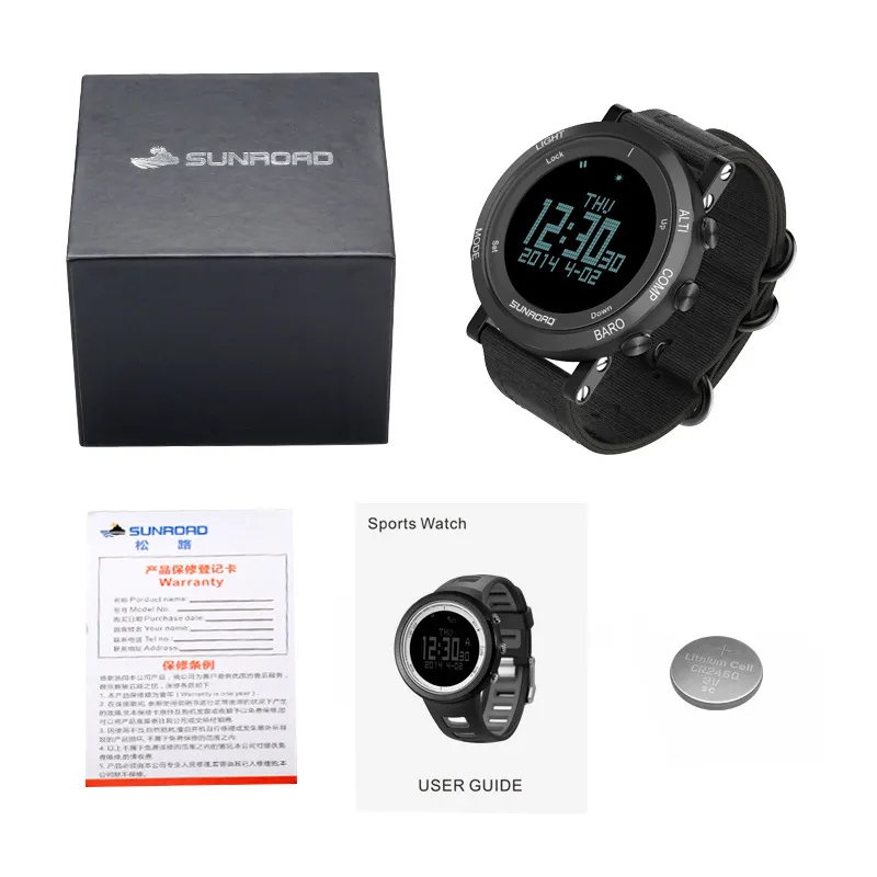 The Multifunctional Mountaineering Watch with Compass is equipped with a long-lasting battery to keep you going during your adventures. The power-efficient design ensures that the watch remains operational for extended periods, so you don’t have to worry about running out of power while you're on the go.