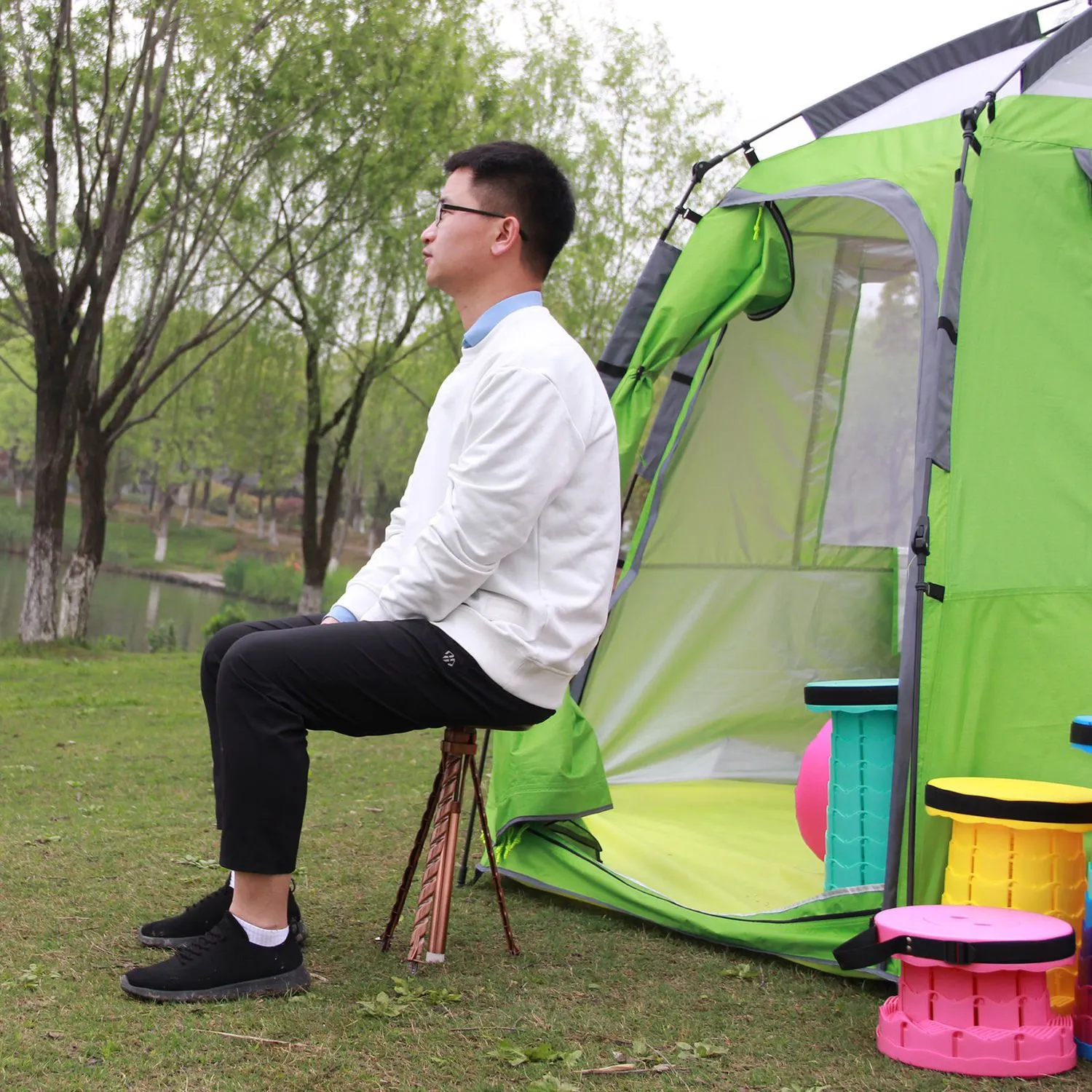 Foldable Stool: Offers a convenient seat to rest anywhere on your journey, reducing the discomfort of sitting on the ground