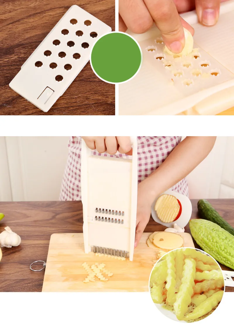 If you're looking for a kitchen tool that saves time, enhances your cooking experience, and reduces the clutter of multiple kitchen gadgets, this multifunctional slicer grater is the ideal solution.