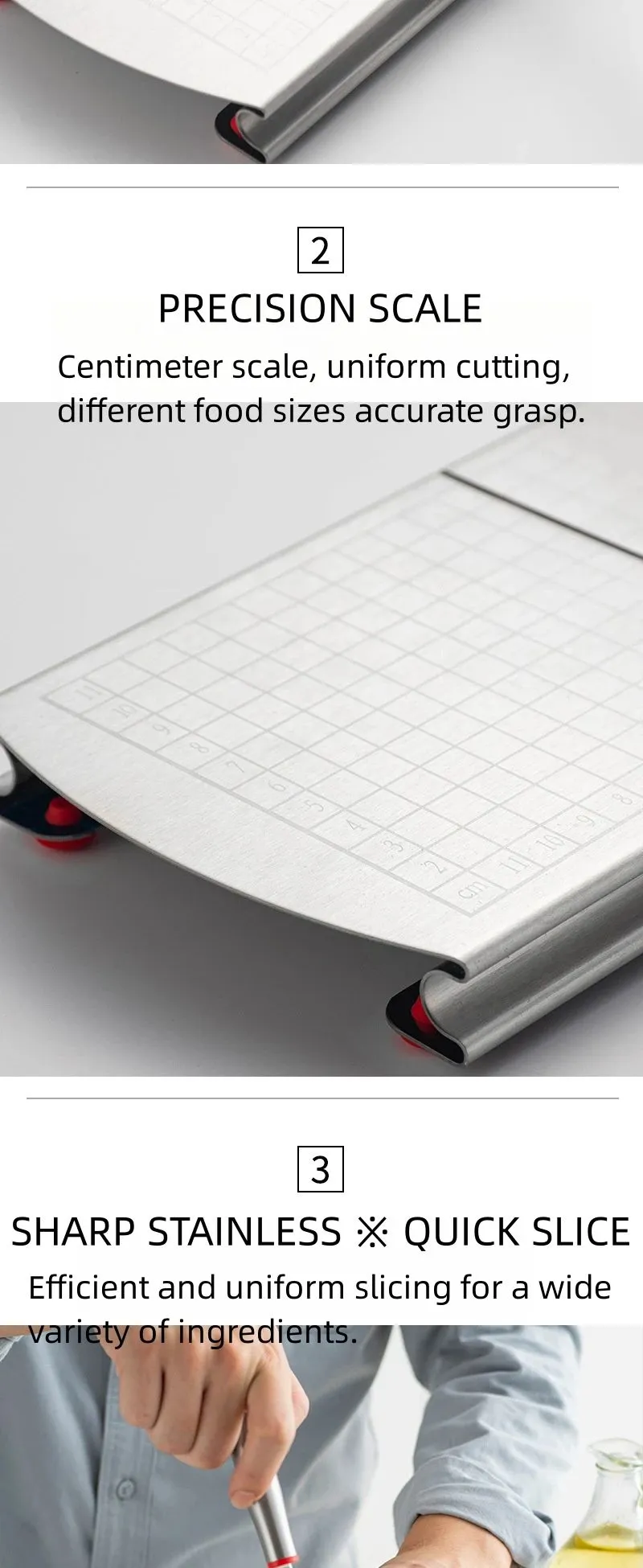 If you're looking for a sturdy, efficient, and high-quality slicer, this stainless steel cutting board with a suction base is the perfect choice!
