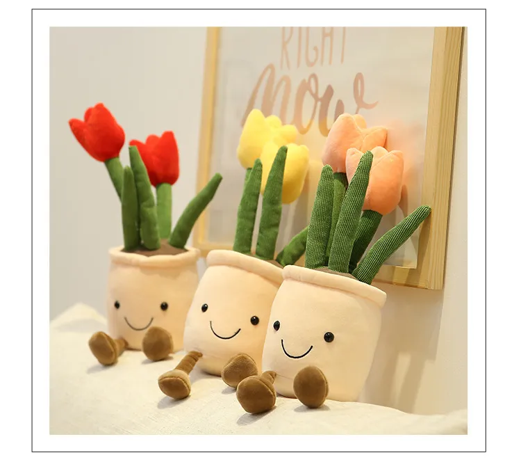 Muñeca de trapo con tulipán suculento y cara sonriente, adorno de planta verde, decoración para balcón, muñeco de peluche