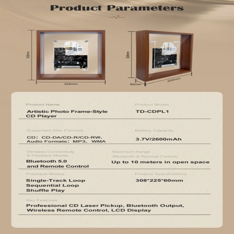 High-Standard Design and Materials】After a year of research, the framed cd player combines functionality and style to suit any home decor. Its matte wooden frame offers a premium feel and durability, blending design with practicality