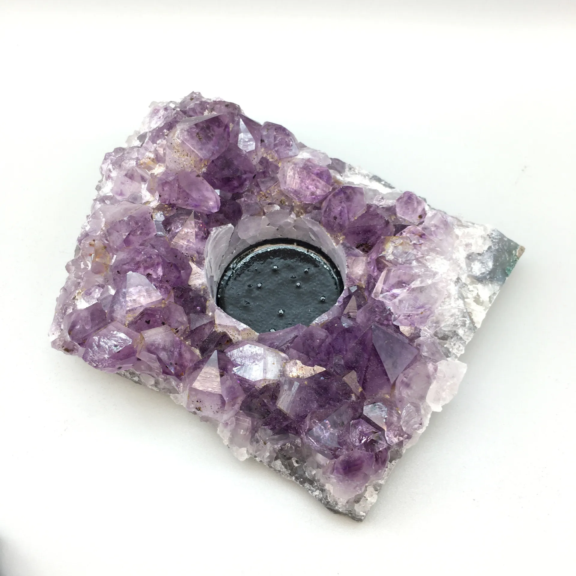Natural Amethyst Vug Candlestick Decoration: A Stunning Purple Vug Block Rough Stone for Your Home