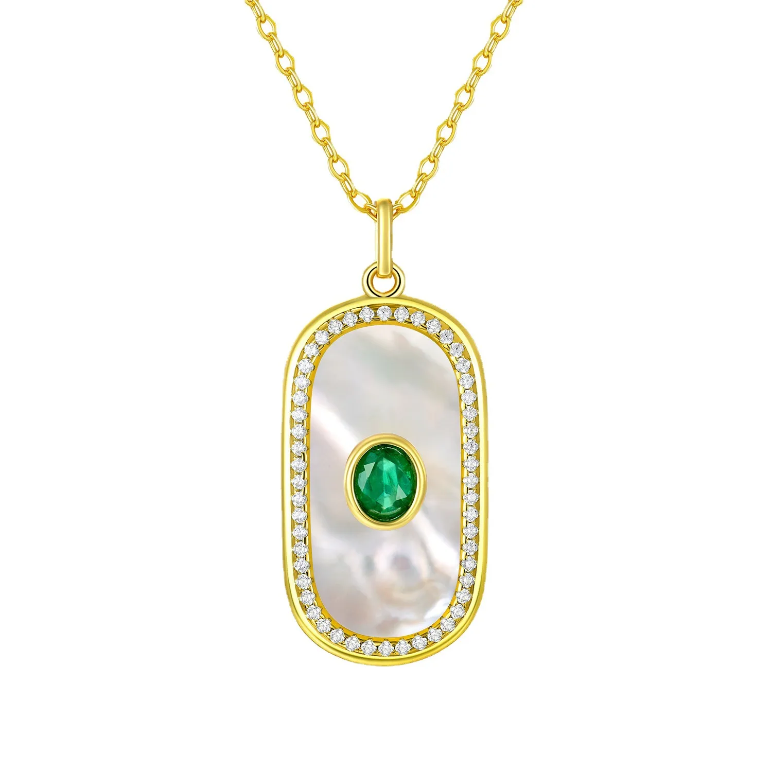 Natural Emerald Pendant S925 Silver Inlaid Fritillaria Necklace Personality Geometric Round Card Shaped Pendant