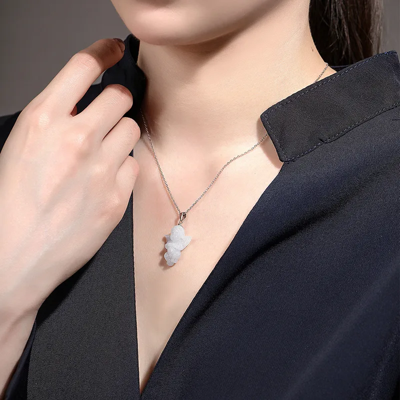 Natural Myanmar A Cargo Jade Angel Baby Pendant Silver Buckle Silver Chain Jade Pendant
