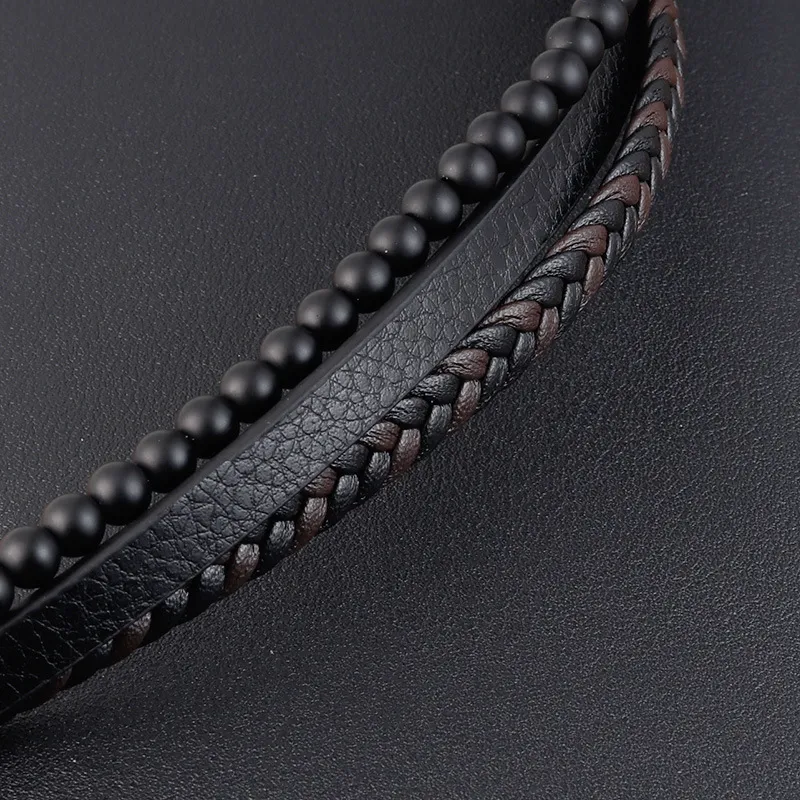 Natural Stone Volcanic Stone Leather Bracelet - A Symbol of Strength and Resilience