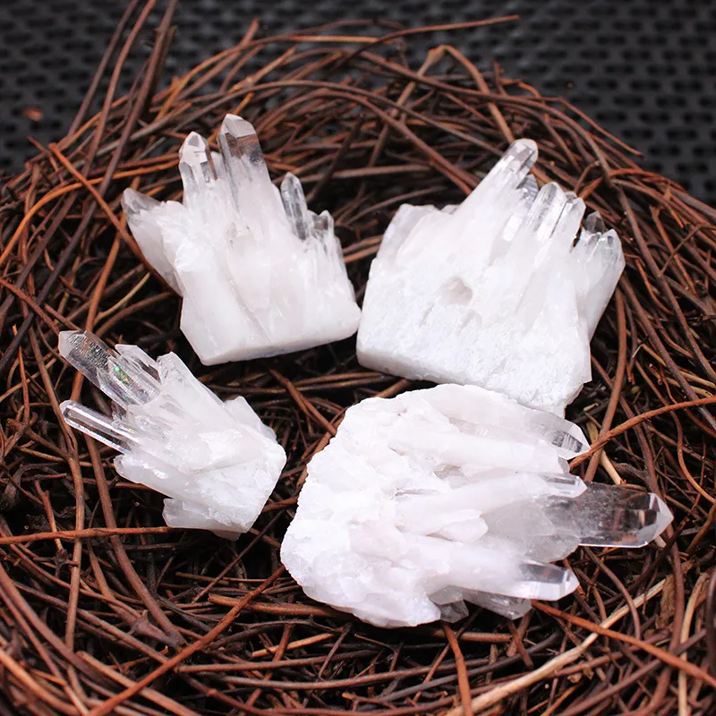 The Natural White Crystal Cluster Ornament Rough Stone is typically made from clear quartz or other white crystals, known
