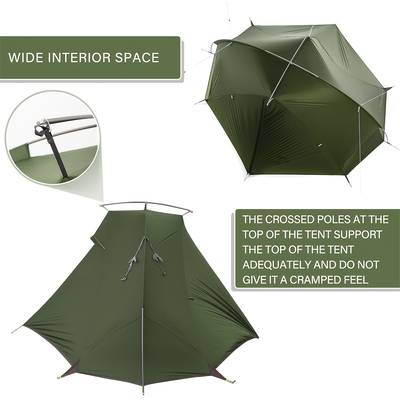 Comfortable for Two: The oval shape and spacious interior offer plenty of room for two adults, making it the perfect tent