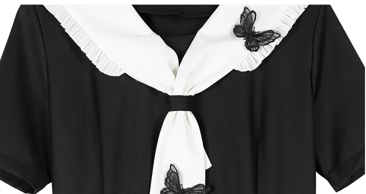 The Navy Sailor Dress is the perfect combination of classic charm and modern sophistication. With its iconic sailor collar, flattering A-line silhouette, and timeless design, this dress adds a touch of nautical elegance to any occasion. Whether you're dressing for a themed event, a casual outing, or just looking to add a unique piece to your wardrobe, the Navy Sailor Dress is sure to impress.