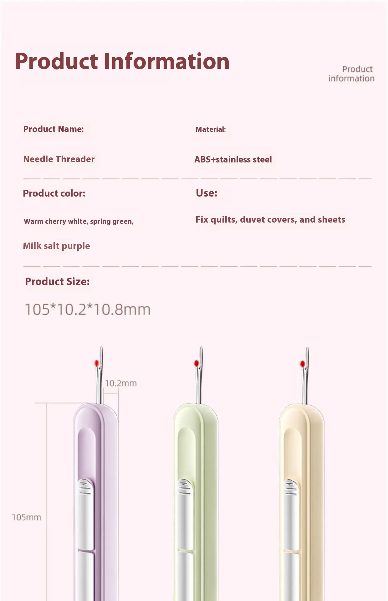 - Using it is a breeze! The unique double-headed design makes threading needles simple and swift. Just insert the threader into the eye of the needle, place the thread on it, and then pull it out gently. Voila, the threading problem is solved in an instant. Its compact size allows you to carry it around with ease, enabling quick repairs and adjustments wherever you are.