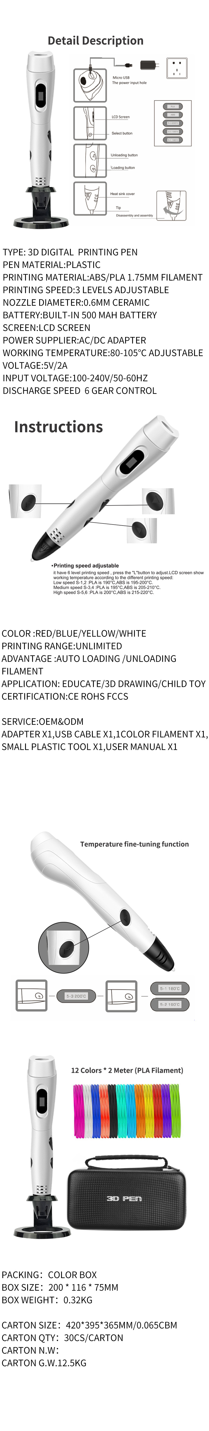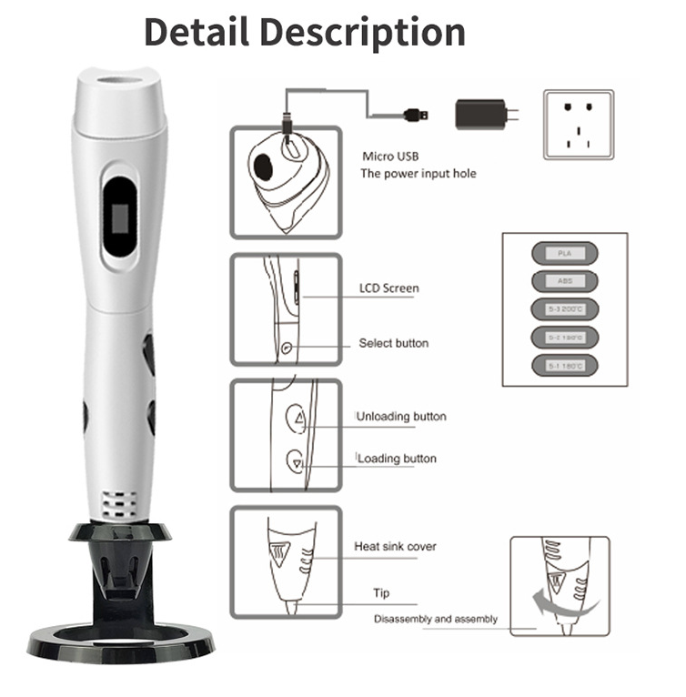 Equipped with advanced technology, the pen offers adjustable speed and temperature settings for precise control, making it easy to create intricate designs with various filament types. The ergonomic design ensures a comfortable grip for extended use, while the lightweight body allows for smooth, steady movement. Compatible with PLA and ABS filaments, this 3D printing pen offers endless possibilities for building, decorating, and learning.