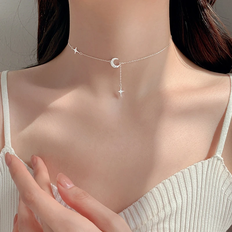 Introducing the New 925 Sterling Silver Moon Star Shape Necklace, a stunning piece of jewelry that combines celestial charm with timeless elegance. Crafted from high-quality 925 sterling silver, this necklace features a beautifully detailed moon and star pendant on a delicate clavicle chain. Perfect for weddings, parties, or as an everyday accessory, this necklace adds a touch of sophistication to any look.