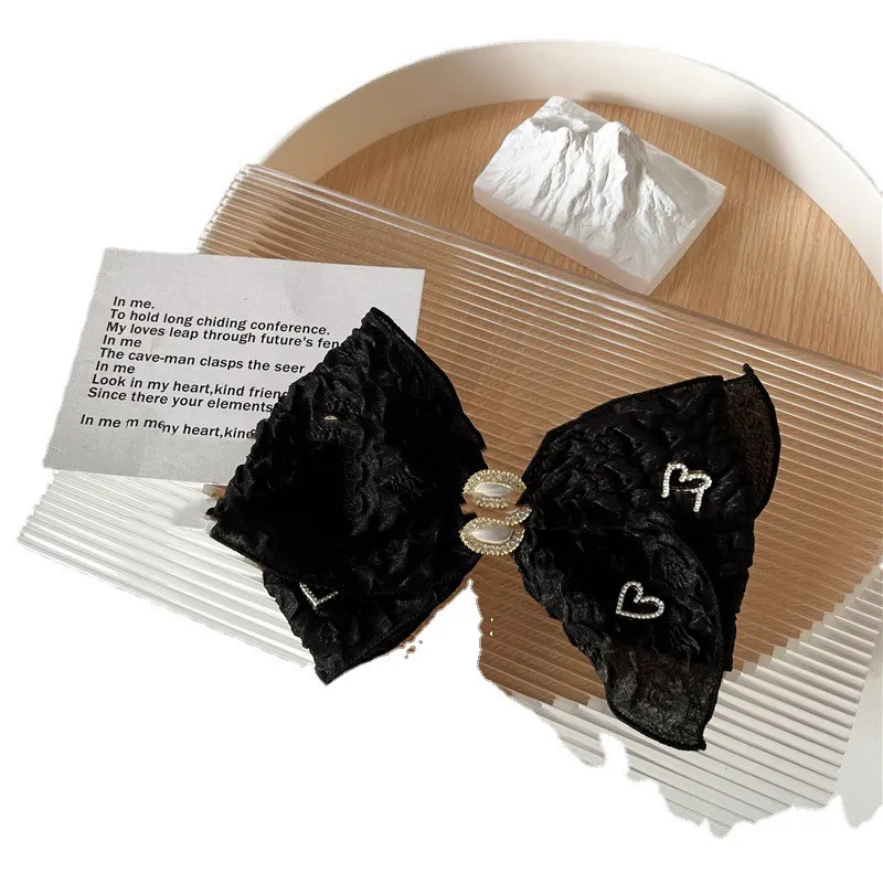 New Black Lace Hair Clip Retro Bow Love Rhinestone Spring