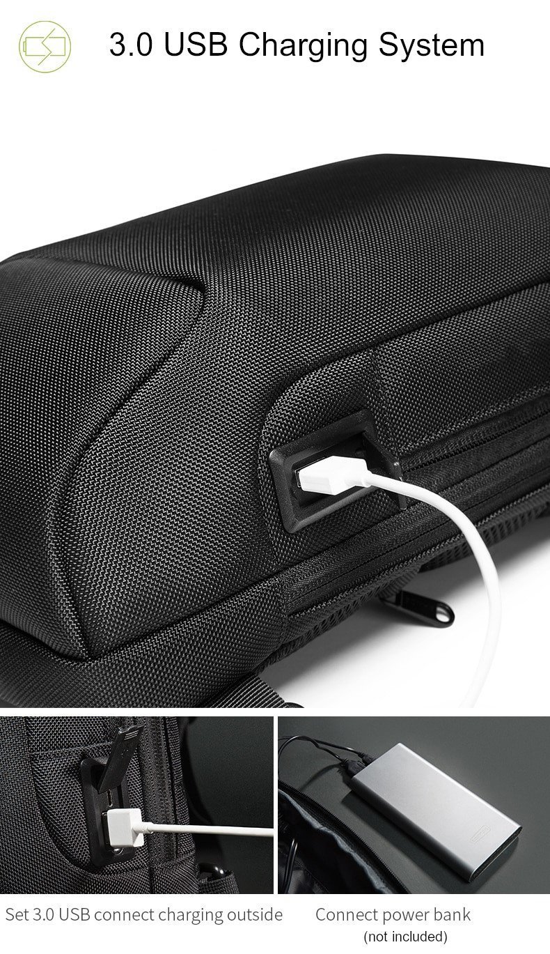- [USB charging port design]: Two simple steps to charge your electronic devices: First, connect your own power bank with the built-in USB extension cable inside the chest bag. Second, make your external USB cable connect with the external USB charging port, and then it can charge your cell phone or other electronic devices. (Note: power bank is not included.)