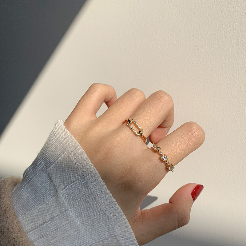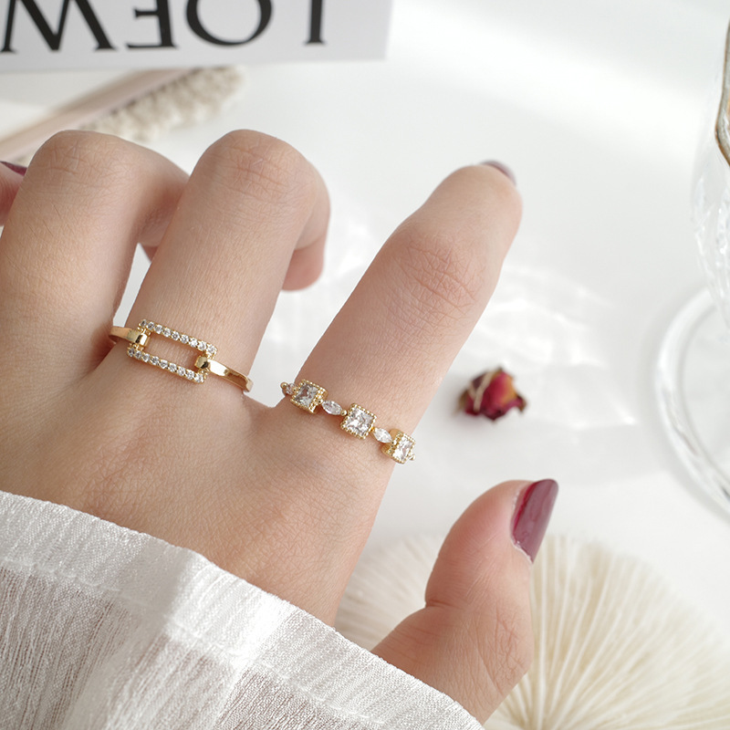 Color: Gold A/Rectangular Alloy Point Diamond-Adjustable Opening Ring, Gold B/Twist-Adjustable Opening Ring