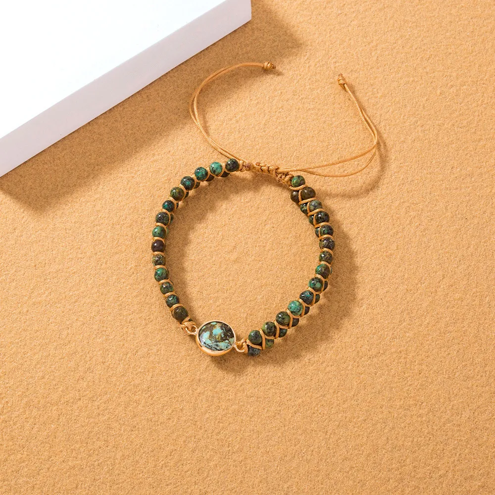 The natural stones incorporated into the bracelet are known for their grounding properties. Stones like turquoise or agate are believed to promote calmness, emotional healing, and balance, helping to reduce stress and support mental clarity.