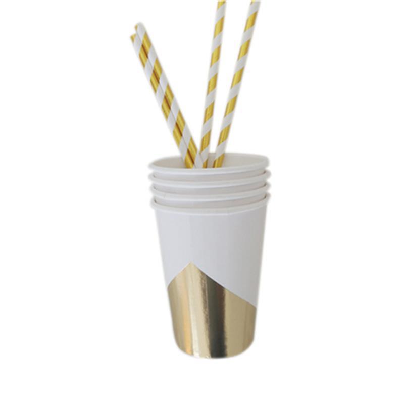 New Golden Paper Plate Cup Napkin Straw Happy Birthday Wedding Party