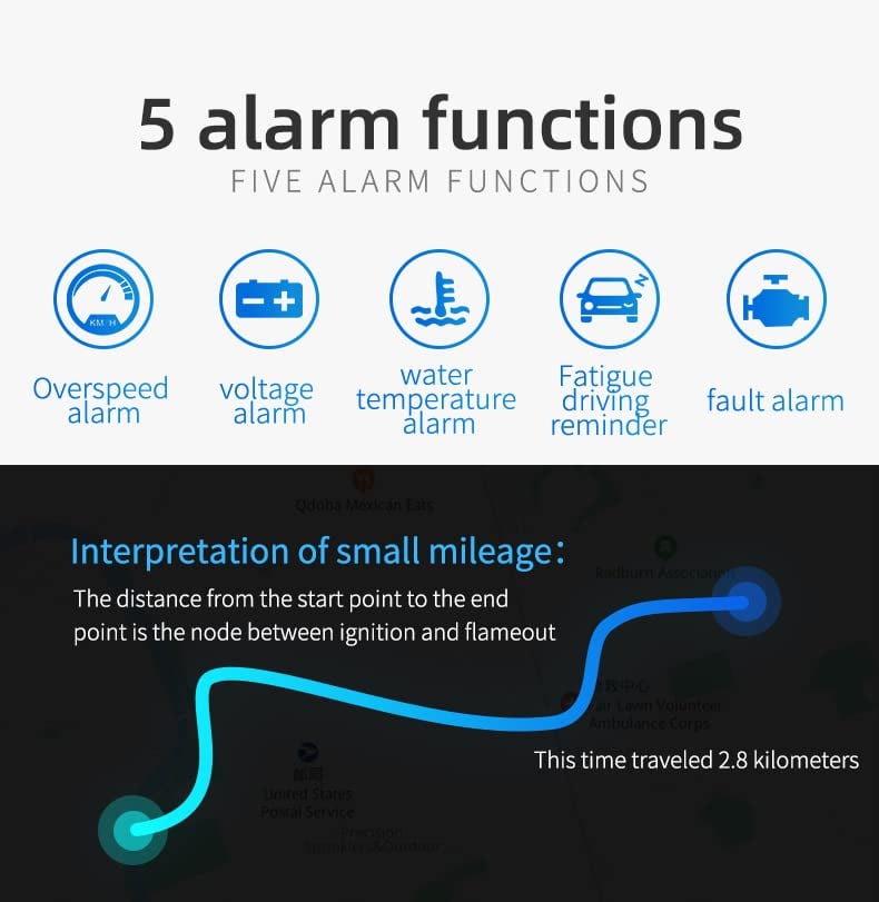 👍【Five Alarm Functions】Overspeed alarm, voltage alarm, water temperature alarm, fatigue driving, fault alarm.