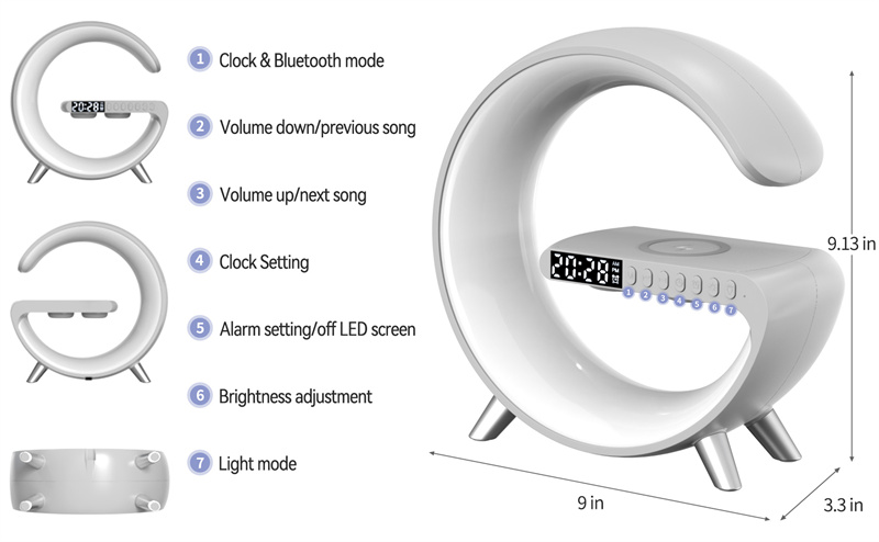 15W fast wireless charging, Bluetooth speaker, music, sleep light, atmosphere light, bedside light, glare effect, Bluetooth audio, clock,
