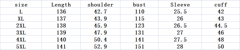 Size: L/XL/XXL/3XL/4XL/5XL