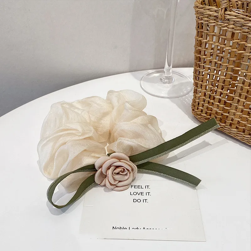 New Ribbon Camellia Large Intestine Hair Ring Temperament Rope