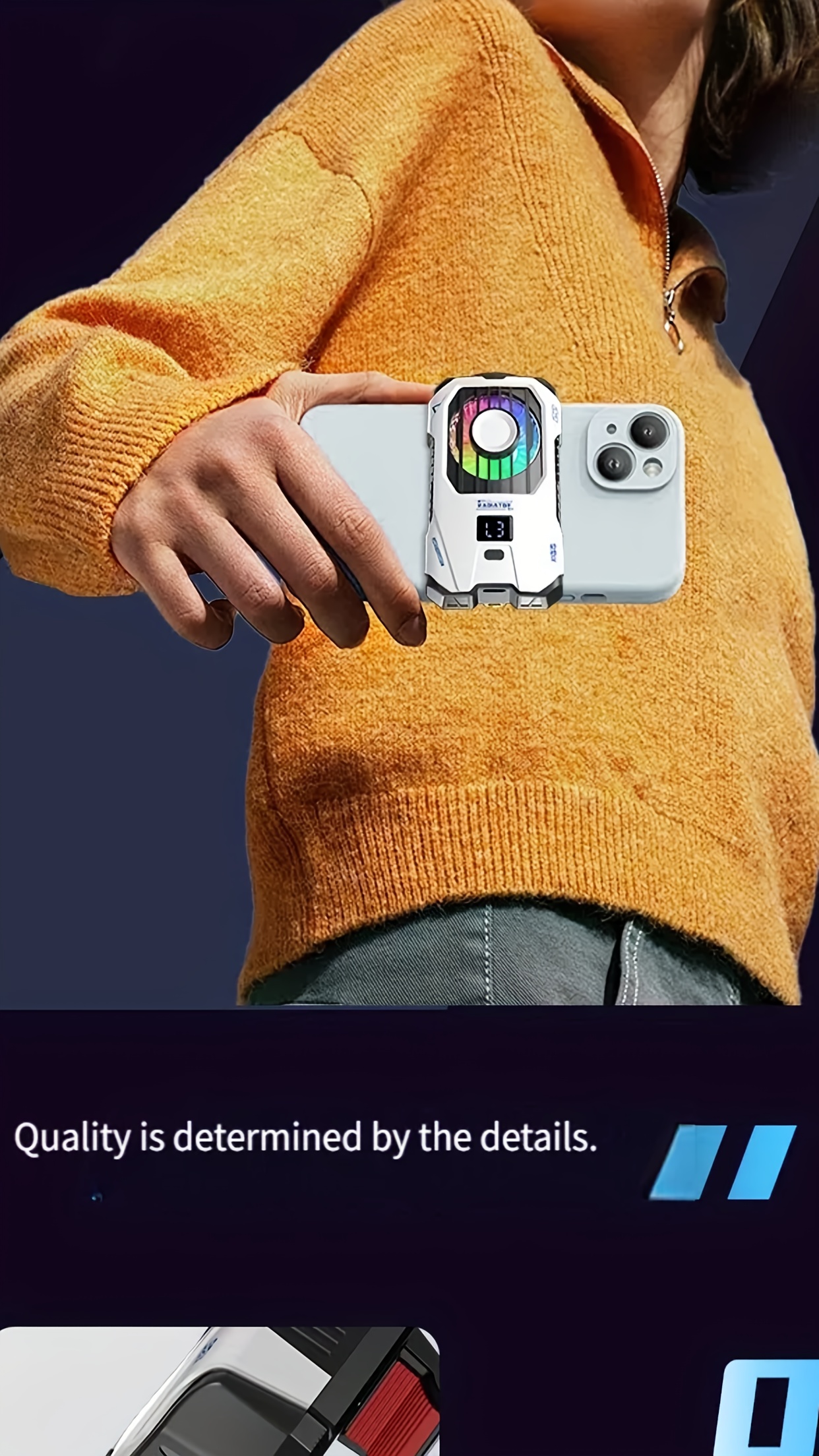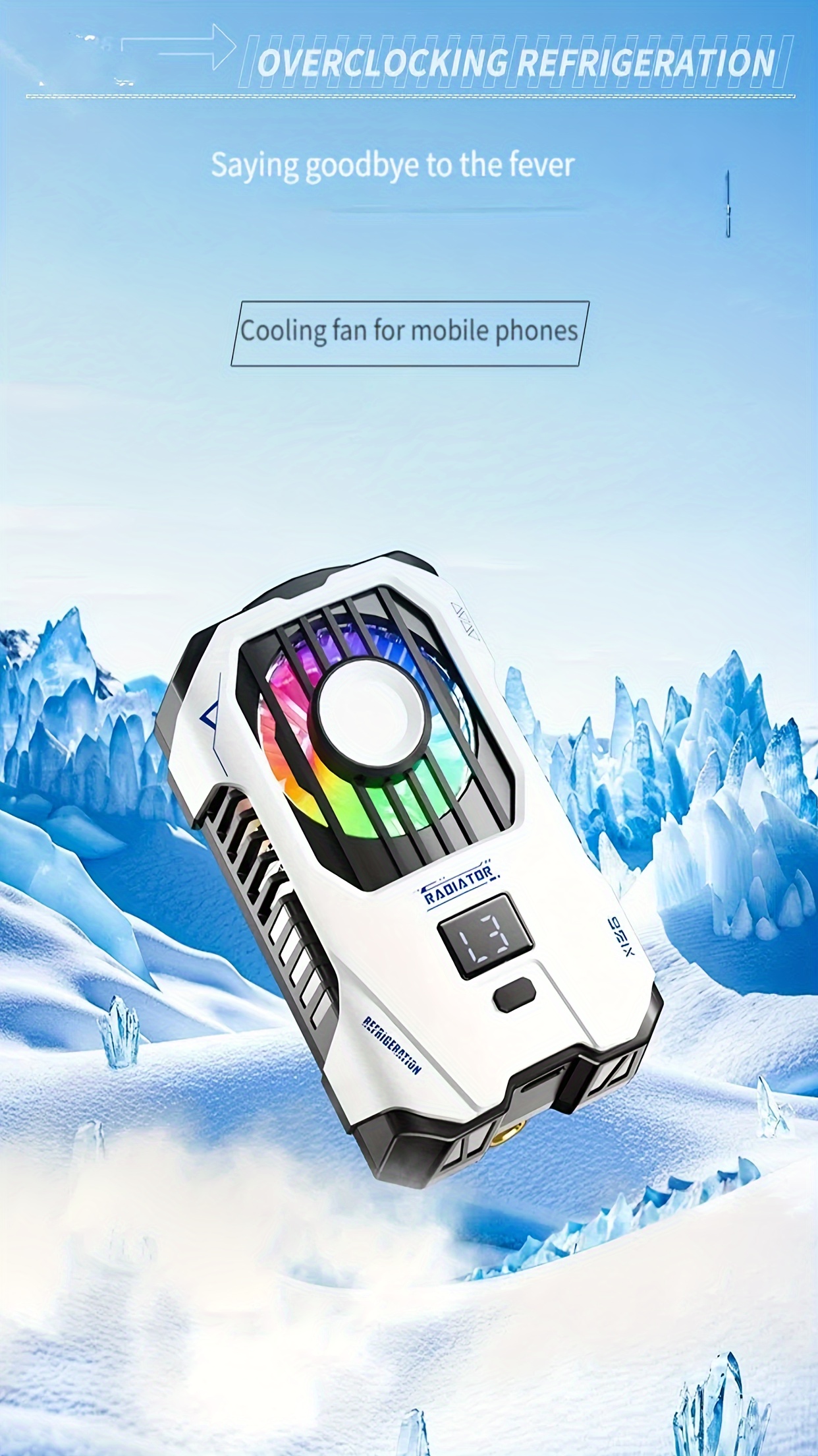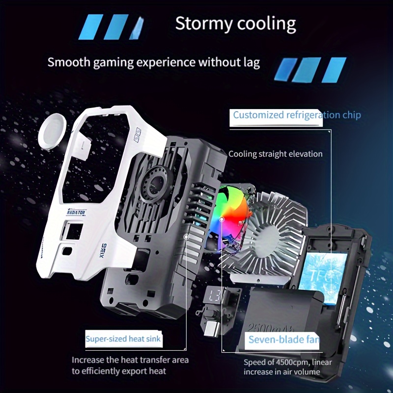 The New Semiconductor Mobile Phone Back Clip Heat Sink with 2500mAh Battery for Instant Cooling Suitable for Mobile Game Players and Mobile Live Broadcast Cooling includes a high-speed cooling fan combined with RGB lighting, providing both functionality and visual appeal. The enhanced airflow accelerates heat dissipation while maintaining a quiet operation.