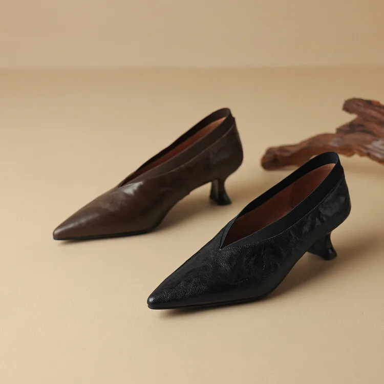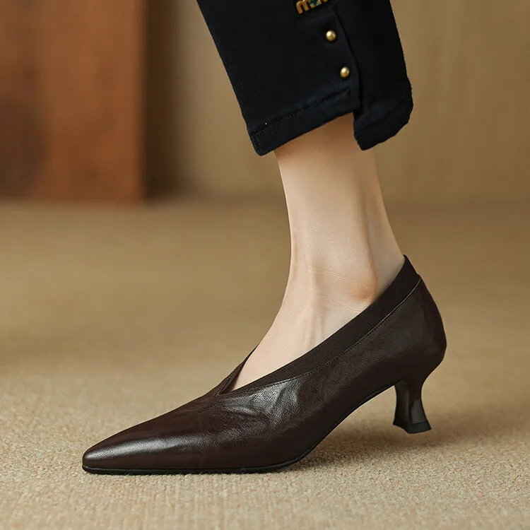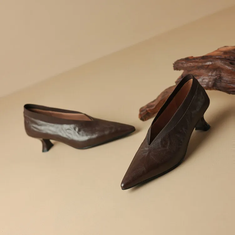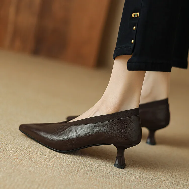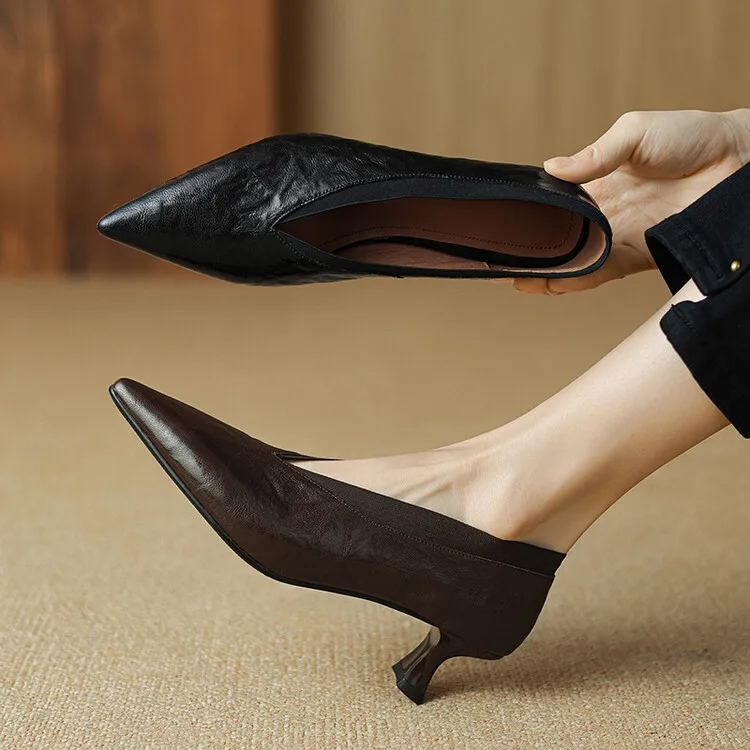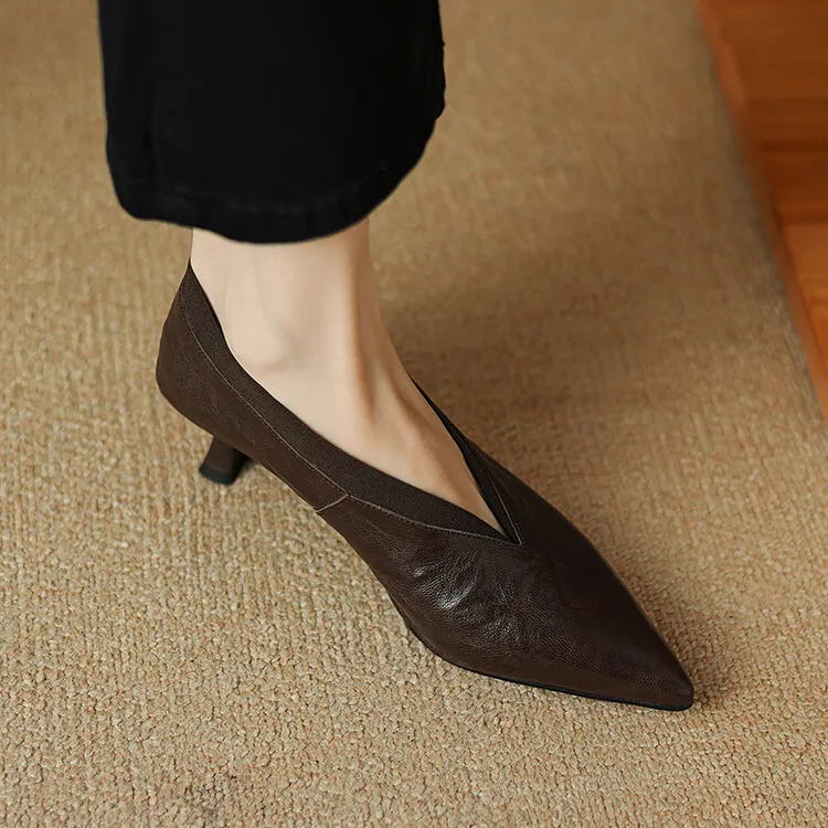 New Spring Summer Genuine Leather Women Shoes Fashion Pointed Toe Women Pumps High Heels Zapatos Mujer Ladies Shoes Brown