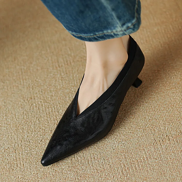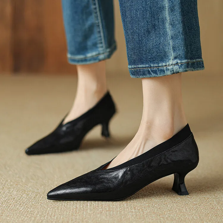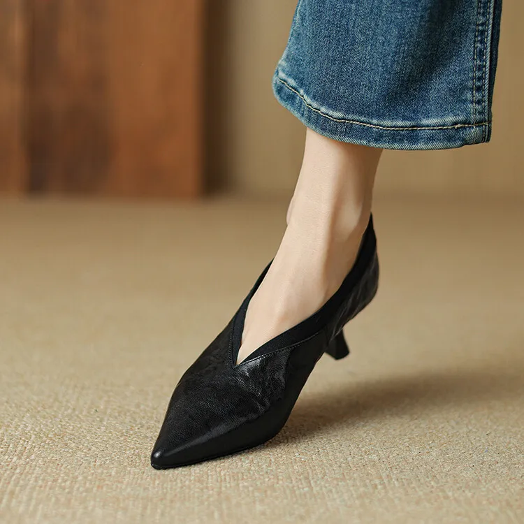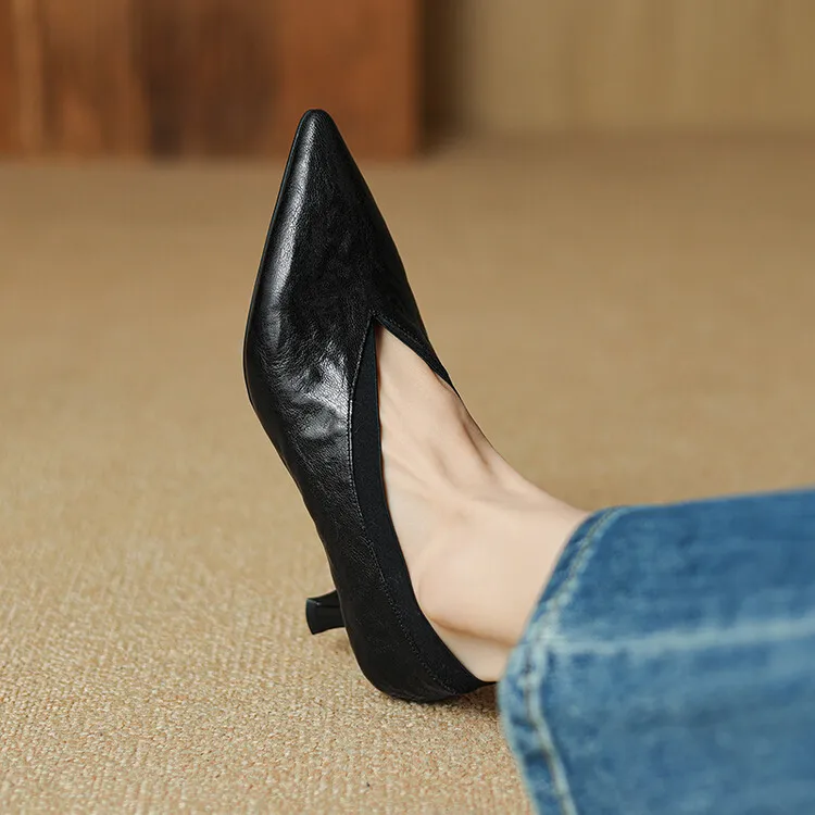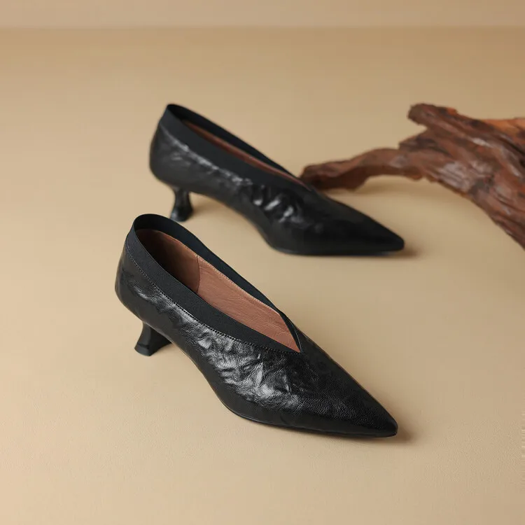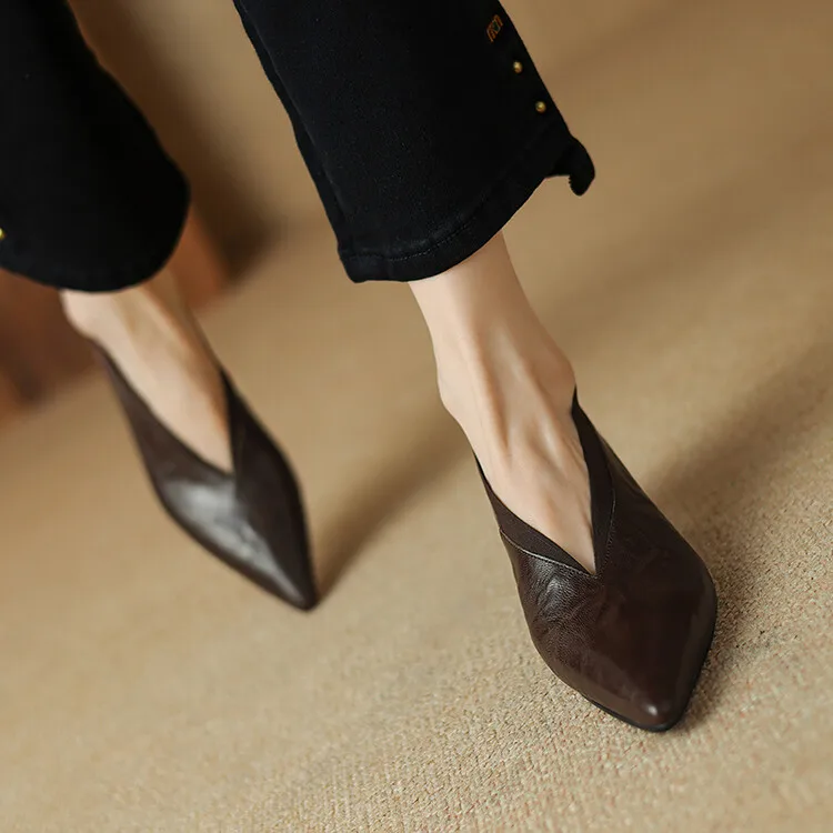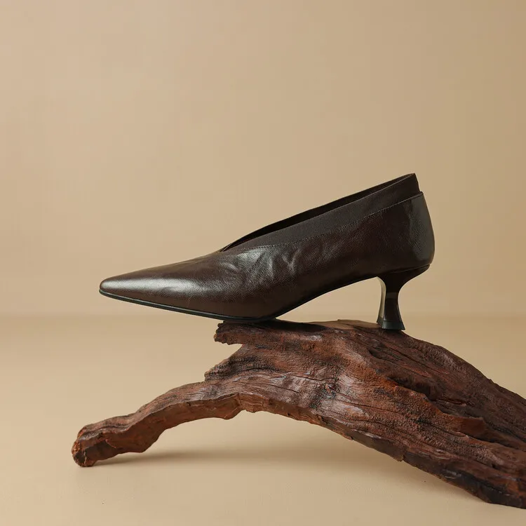 New Spring Summer Genuine Leather Women Shoes Fashion Pointed Toe Women Pumps High Heels Zapatos Mujer Ladies Shoes Brown