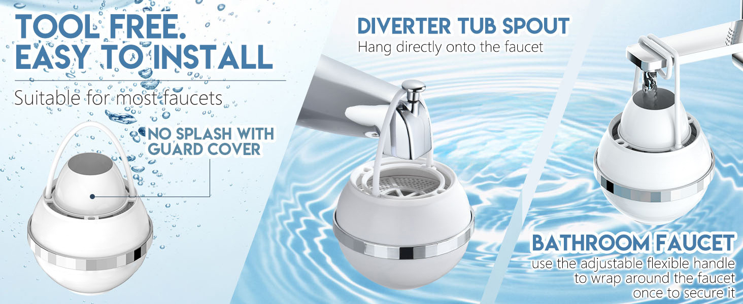 - EASY INSTALLATION: This innovative bath water filter is effortless to install and requires no additional tools or equipment. It can fit seamlessly onto all standard bathtub faucets, making it a convenient addition to any bathroom. Includes new silicon fasten band to accommodate any faucet design