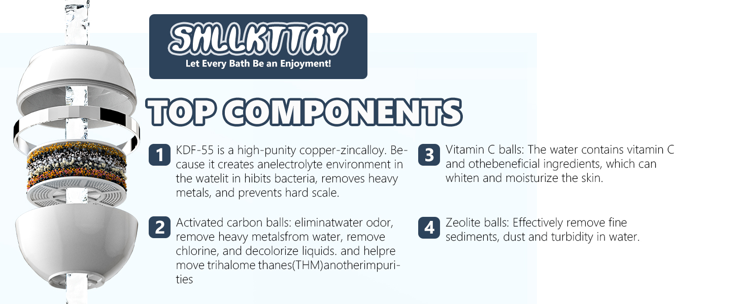 - 【Advanced Filtration】Features KDF 55, activated carbon, and zeolite to effectively remove chlorine, heavy metals, and odors, providing cleaner, softer water for healthier skin and hair.